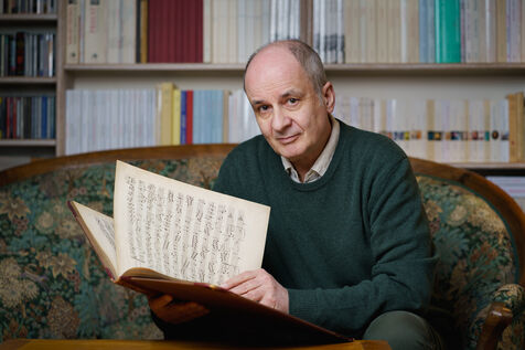 Portraits of French harpsichordist Olivier Baumont, professor at the Conservatoire National Supérieur de Musique et de Danse de Paris, at home in 2025.