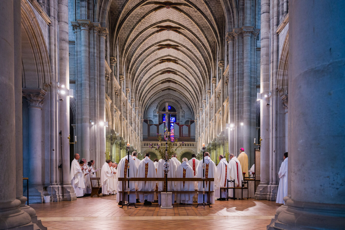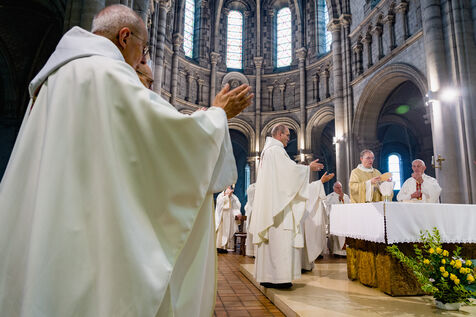 Mass celebrated by Mgr Bruno FEILLET, bishop of SEEZ, for Father GUERRIC and Father THOMAS' 20th anniversary of priesthood at the Abbaye de la TRAPPE in Normandy, France, on August 4, 2022.