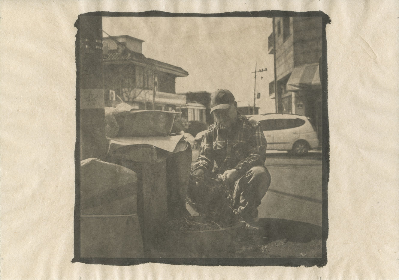 Tirage Palladium, teinté au thé.
