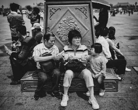 Tian'anmen Square was an emblematic place in Beijing, where Chinese people gathered with their families to take photos and walk around. Framed by monuments reflecting China's history, it was a must-visit place for tourists, offering a unique cultural and historical experience. Photography by Serge Pagano / Hans Lucas.