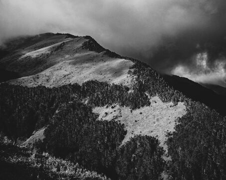 On the trail to Hehuanshan East Peak, vegetation clings to the steep slopes. Between tufts of grass, rock emerges, breaking through like an ancient memory, shattered by the cold, smoothed by the wind. Dead shrubs, eroded by frost and time, stretch their blackened branches toward the void, specters of another age. The mist arrives suddenly, rolling over the ridges and pooling in the hollows, erasing perspectives, swallowing the landscape. A heavy silence settles, as if the mountain is holding its breath.