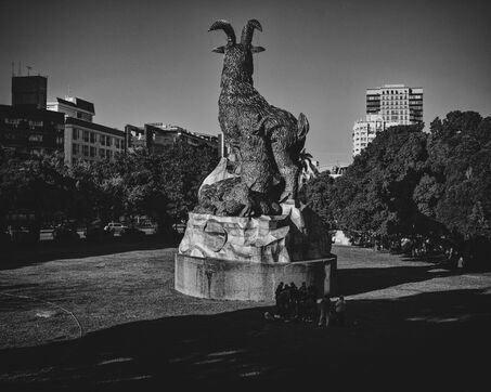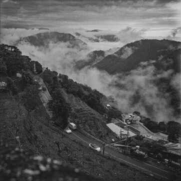 The descent toward Nantou is gentler, the road winding between tea plantations, between orchards suspended in a sea of clouds. Everything seems to float, bathed in diffuse light. Below, Taichung stretches between mountain and ocean, a city with an uncertain geography, where buildings rise without a clear order. A few glass and steel towers puncture the sky, but corrugated metal still dominates, covering makeshift neighborhoods with narrow alleys and walls worn by humidity.