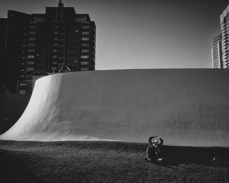 The morning light stretches over Taichung, gliding across facades, catching on the glass of buildings before dissolving into the cool air. At a café table, a couple in wedding attire savors breakfast, their movements measured, their silhouettes frozen in an almost unreal elegance. The whiteness of the dress contrasts with the table, with the still-sleeping city, with the long shadows slipping over the asphalt.