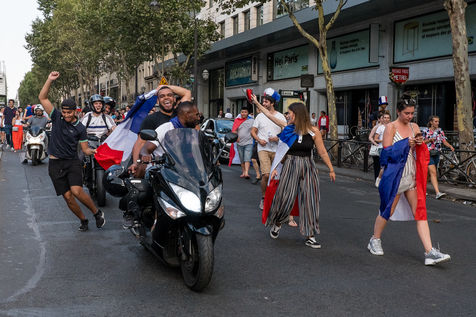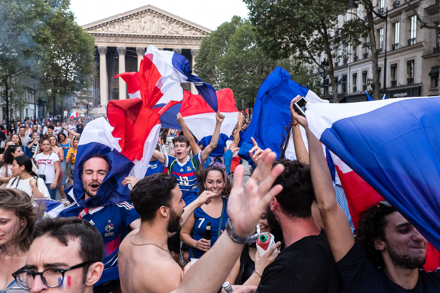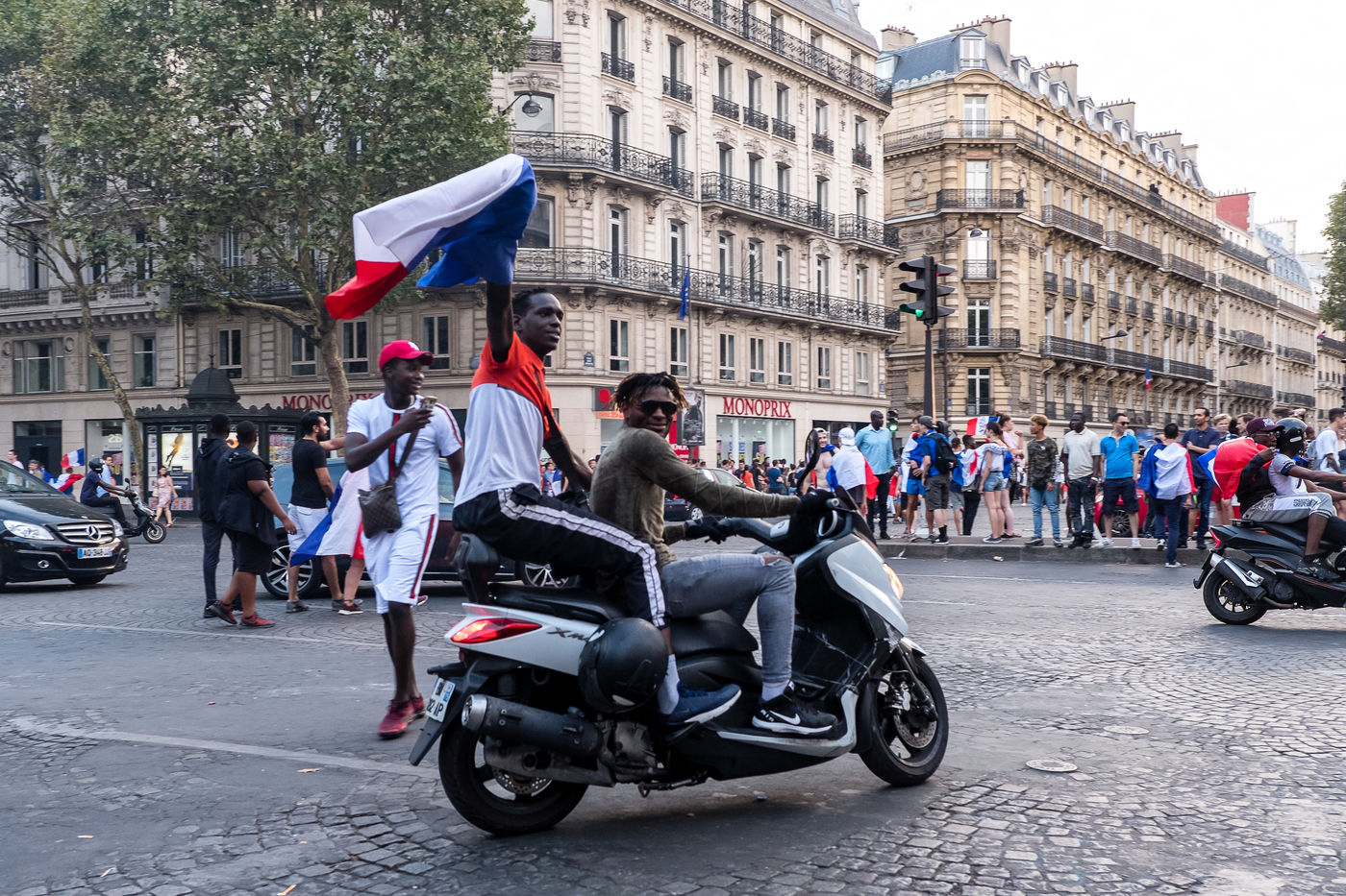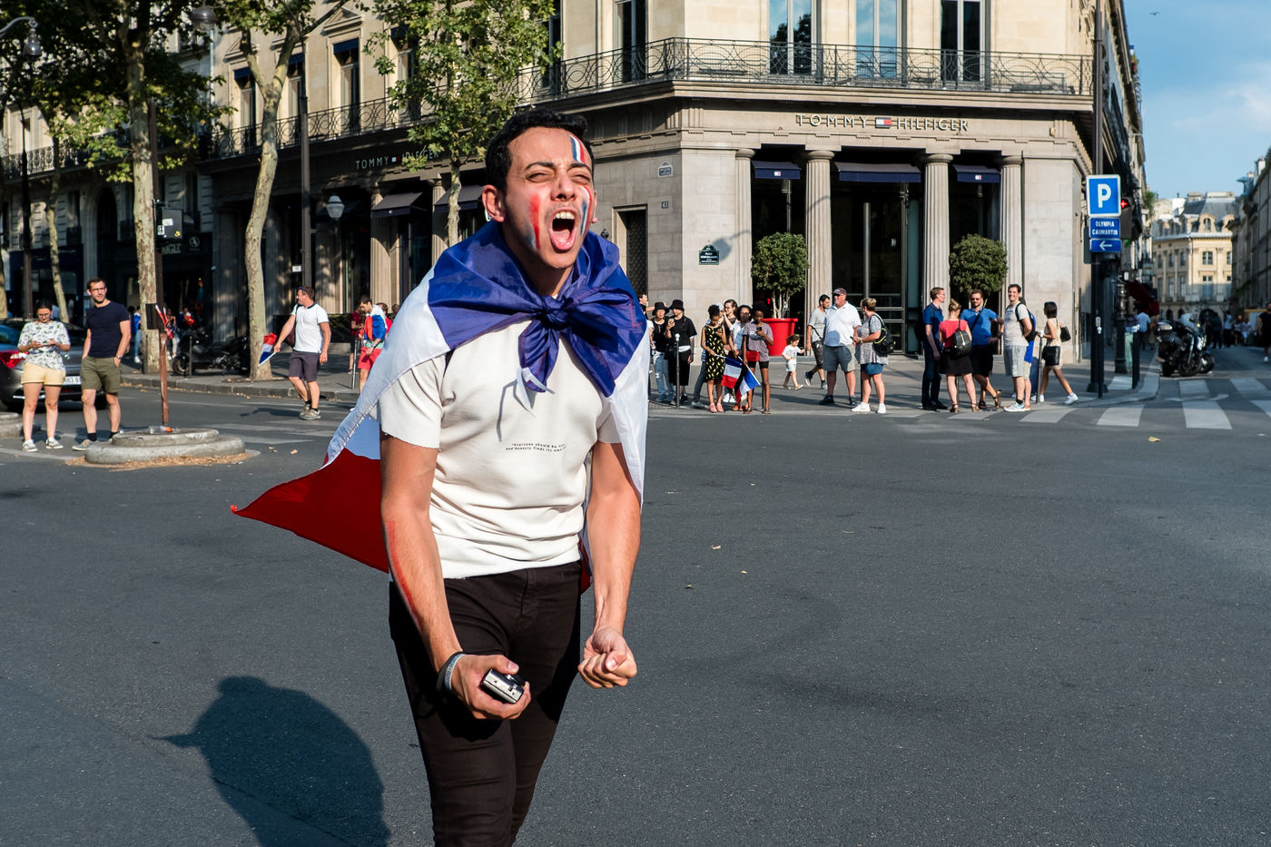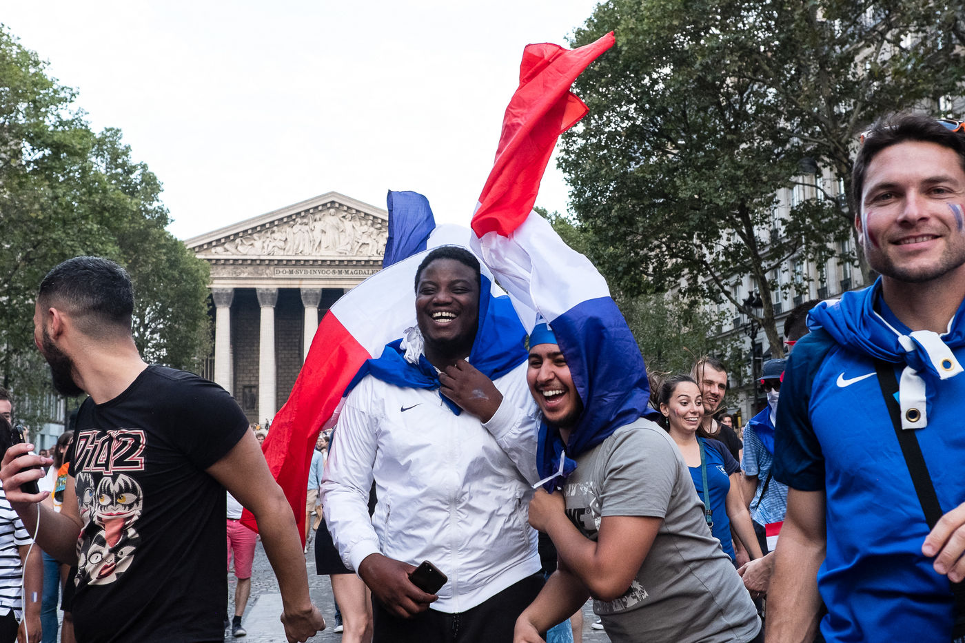 Supporters fetant la victoire de la France, championne du mon de football pour la seconde fois, après 20 ans d'attentes....