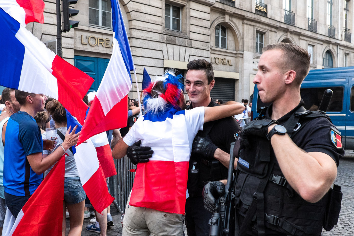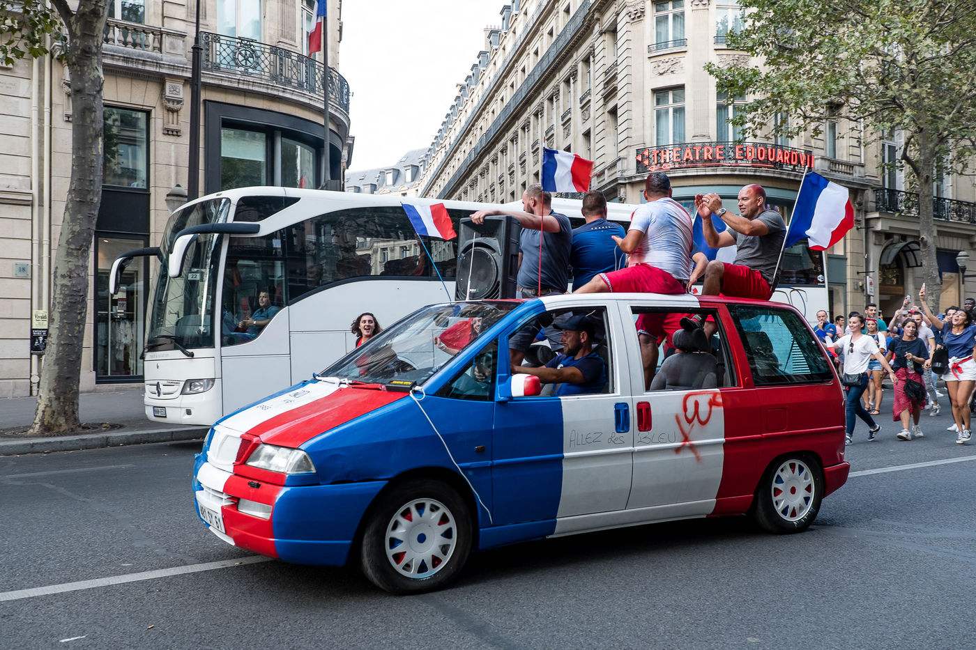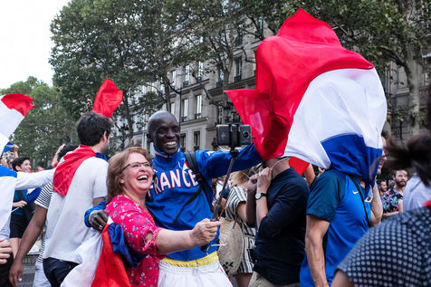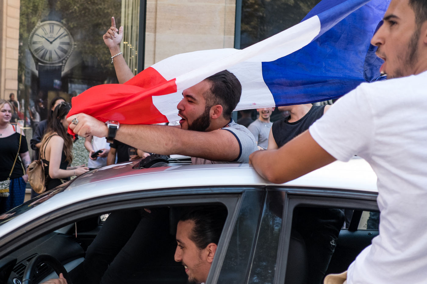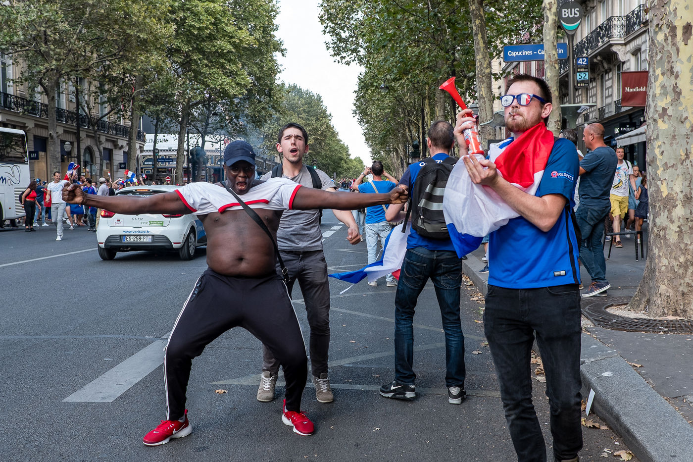 Supporters fetant la victoire de la France, championne du mon de football pour la seconde fois, après 20 ans d'attentes....