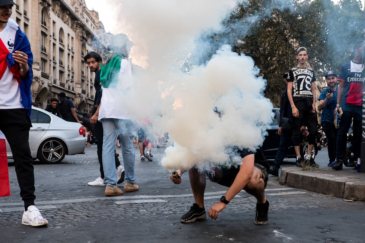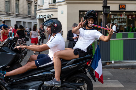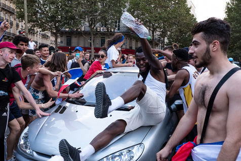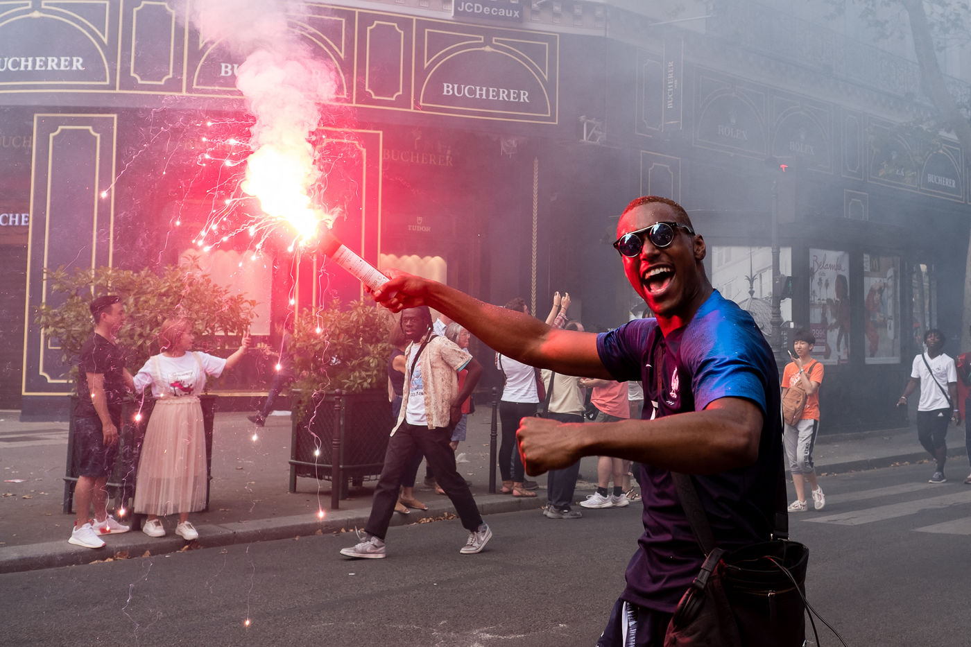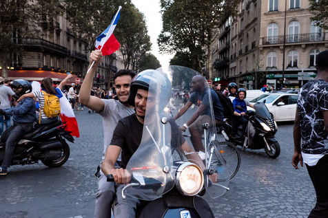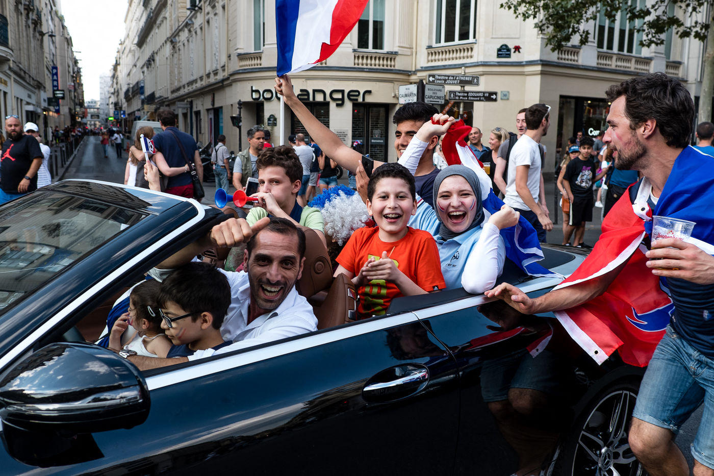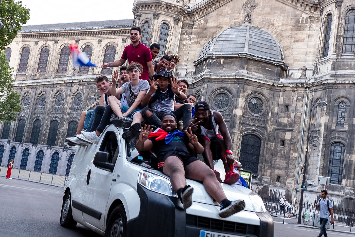 Supporters fetant la victoire de la France, championne du mon de football pour la seconde fois, après 20 ans d'attentes....