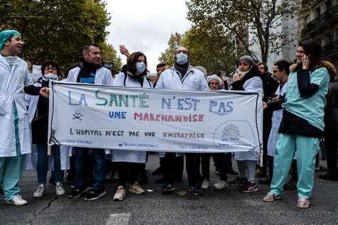 Grande mobilisation des personnels hospitaliers suite à l'appel national du Collectif Inter Hopitaux pour protester contre les réformes annoncées par la ministre de la santé Agnes Buzyn, le 14 novembre 2019 à Paris.