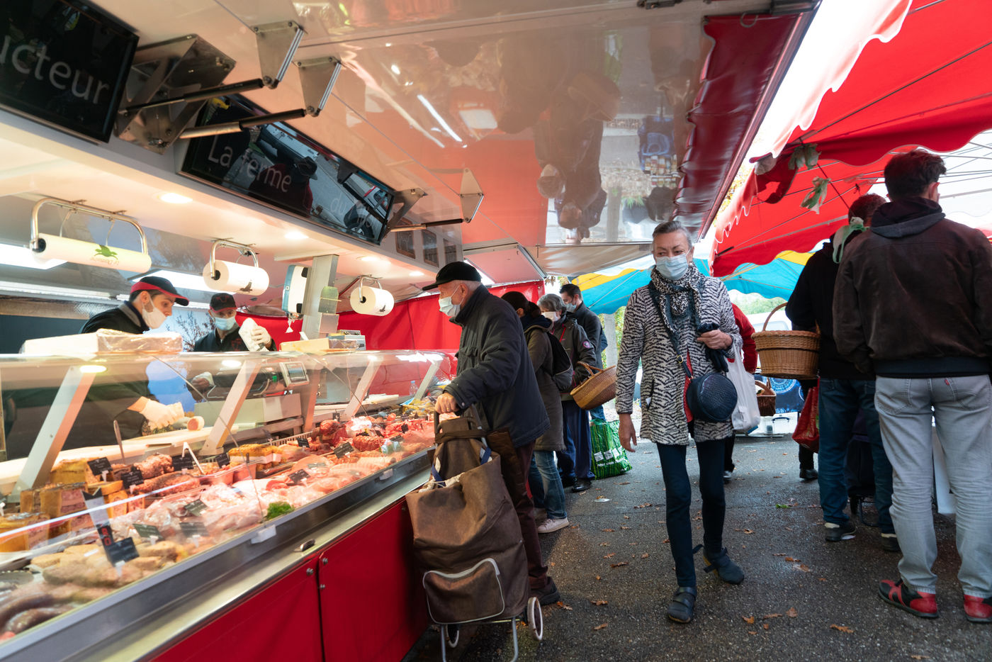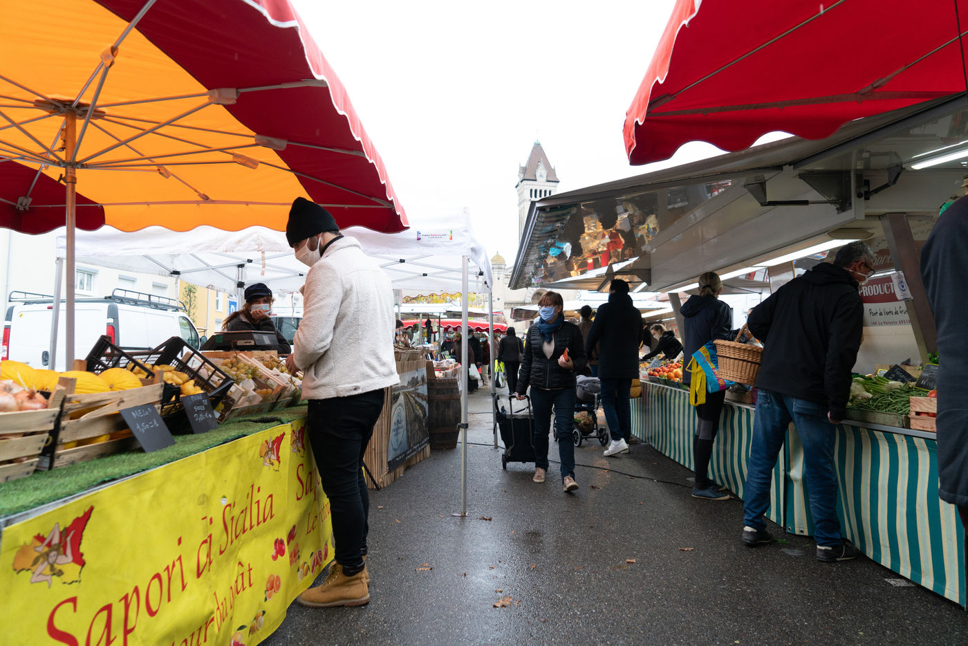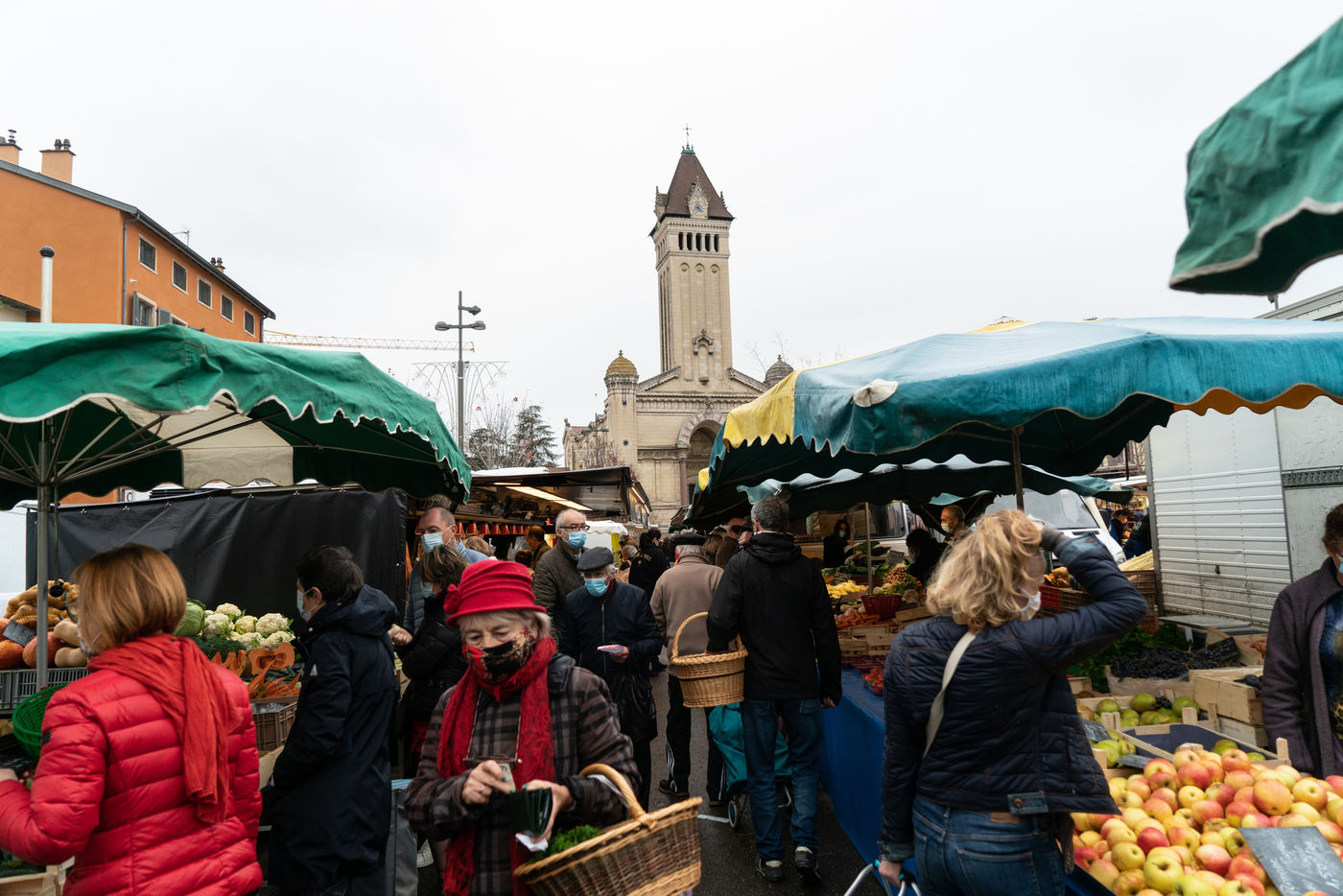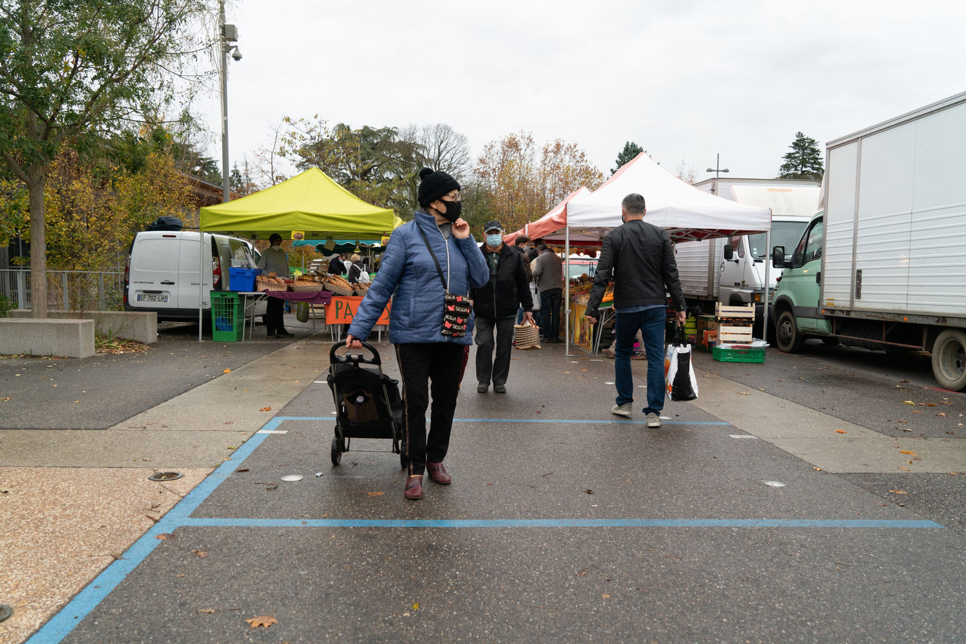 Pendant le confinement mise en place pour limiter la propagation du coronavirus (2ième vague), les marchés restent ouverts. Comme dans tout le département du Rhône, le port du masque y est obligatoire.