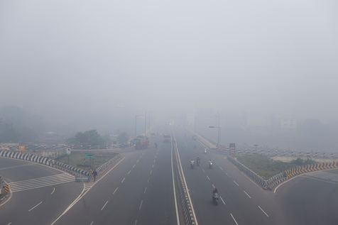 India, Chennai, 2022-01-13. Commuters travel amid dense smoggy conditions caused by the Bhogi Bonfire in Chennai. Bhogi is the first day of the four-day Makara Sankranti festival. On Bhogi, people discard old and derelict things and concentrate on new things causing change or transformation. People light bonfires with logs of wood, old clothes, and wooden furniture at home that are no longer useful. Photograph by Sri Loganathan Velmurugan / Hans Lucas.