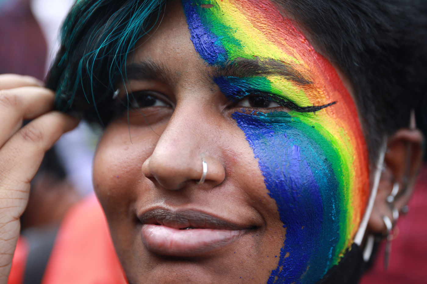 India, Chennai, 2022-06-26. Activists and supporters of LGBTQ community walk a pride parade marking the Pride month in Chennai. Pride month begins on June 1st and goes on till June 30th. Pride Month commemorates years of struggle for civil rights and the ongoing pursuit of equal justice under the law for the lesbian, gay, bisexual, transgender, and queer community, as well as the accomplishments of LGBTQAI+ individuals. Photograph by Sri Loganathan Velmurugan / Hans Lucas.