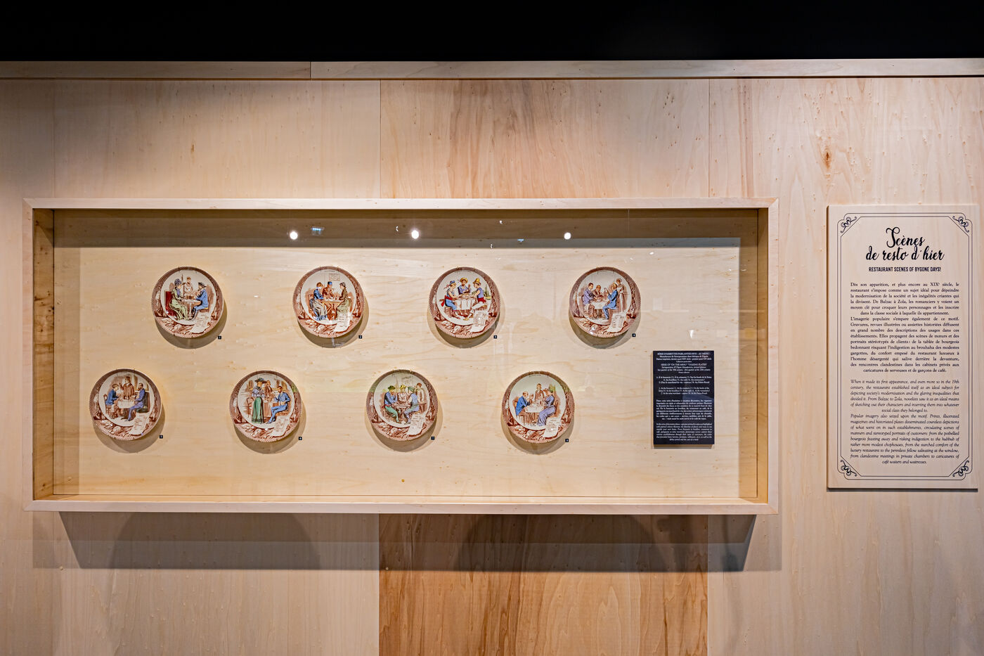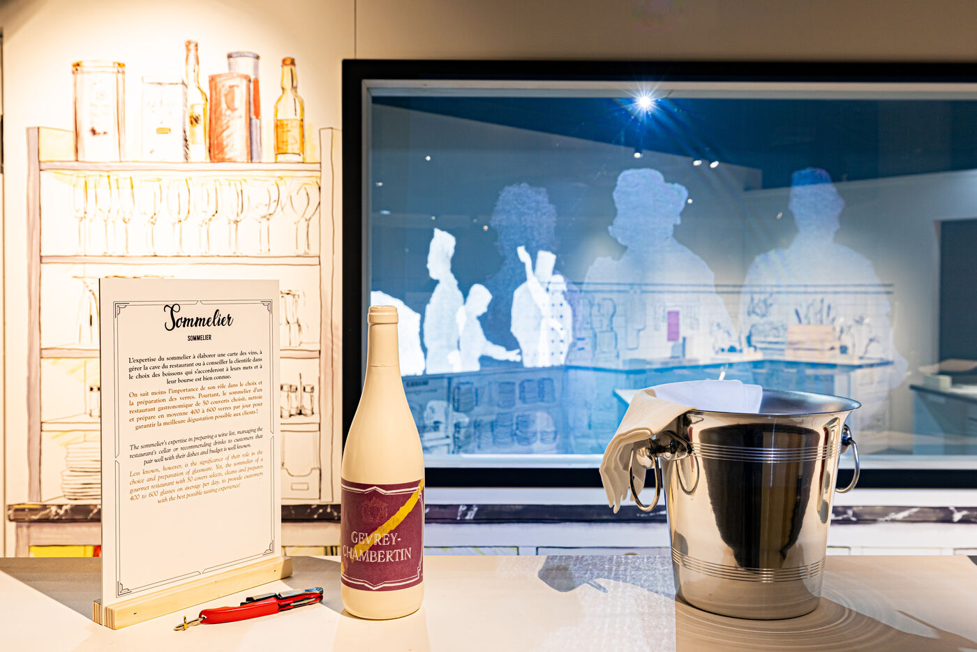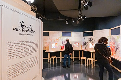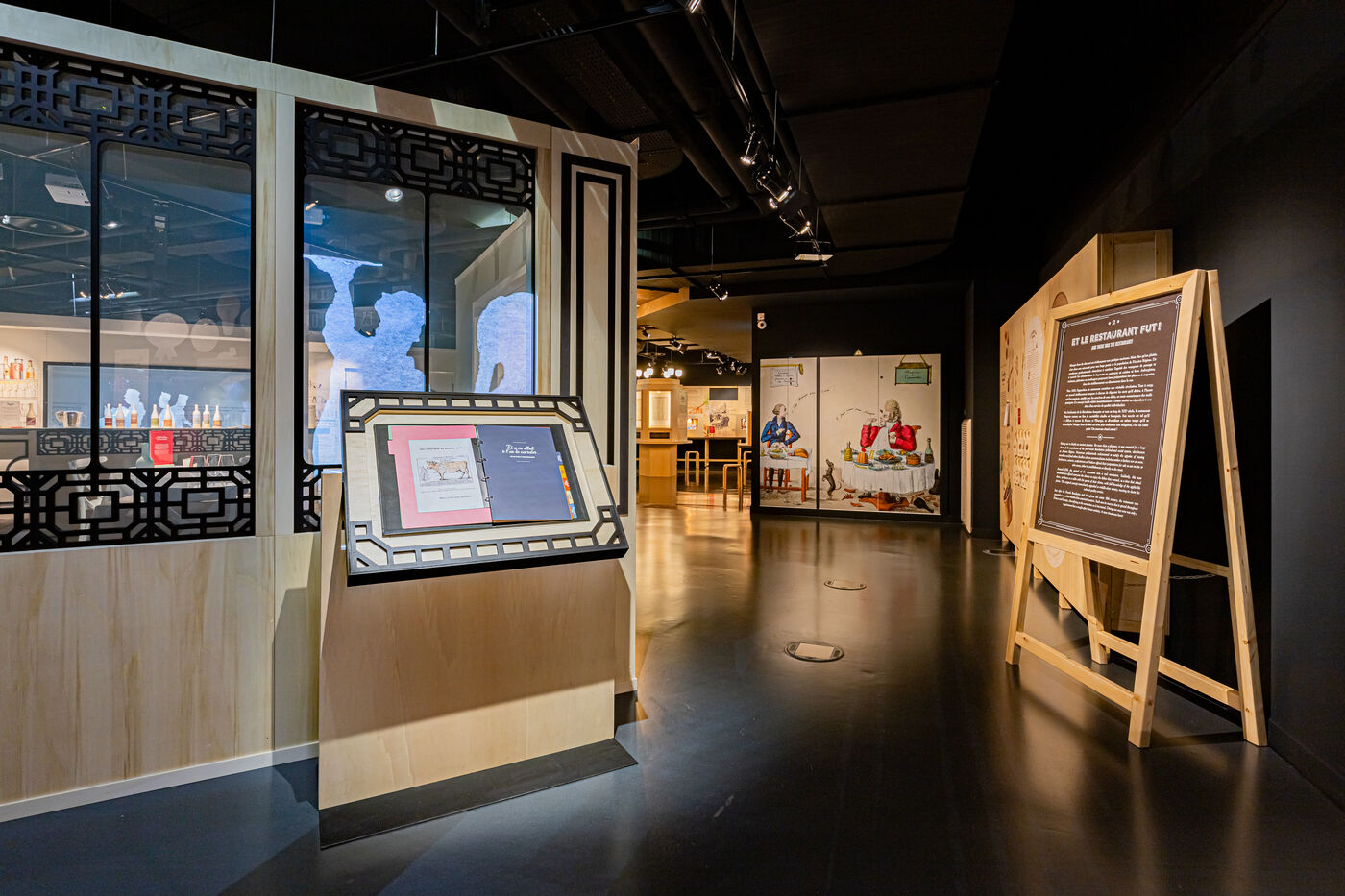 Temporary exhibition "And if we go to a restaurant ?" presented at the Cité de la gastronomie et du vin in Dijon, from 22 December 2023 to 06 January 2025. A gourmet exhibition to be enjoyed in five courses: aperitif, starter, main course, cheese and dessert for a theatrical immersion in the world of the restaurant in all its facets: its forms, its history, its professions, its social role and the changes it is undergoing. Sponsored by Michel Escoffier and Thierry Marx.