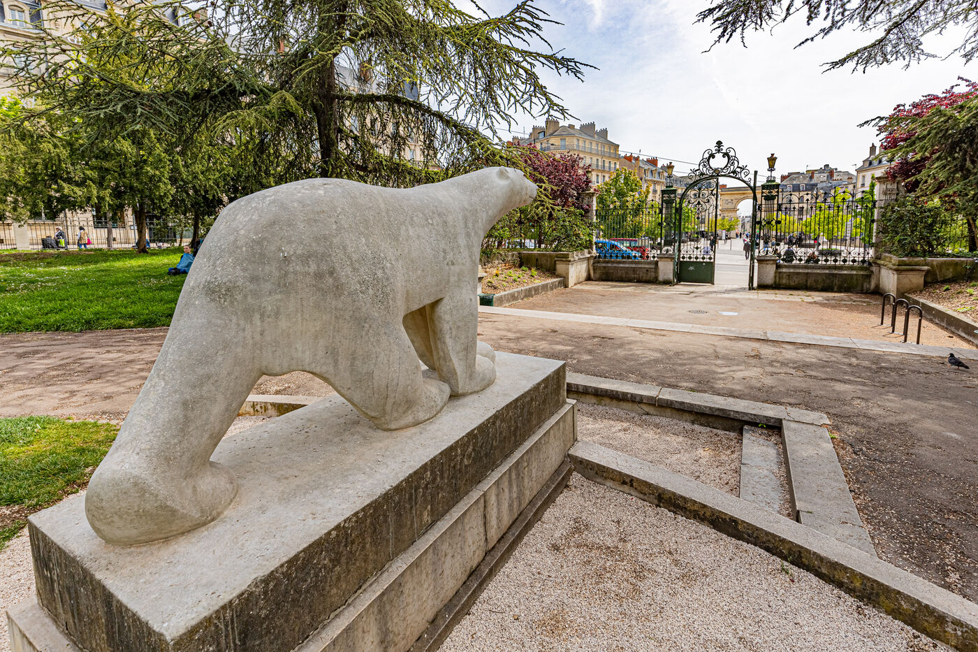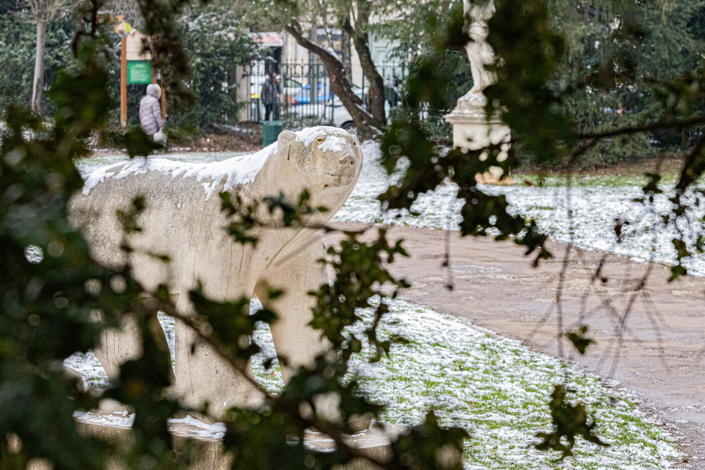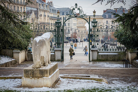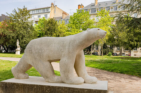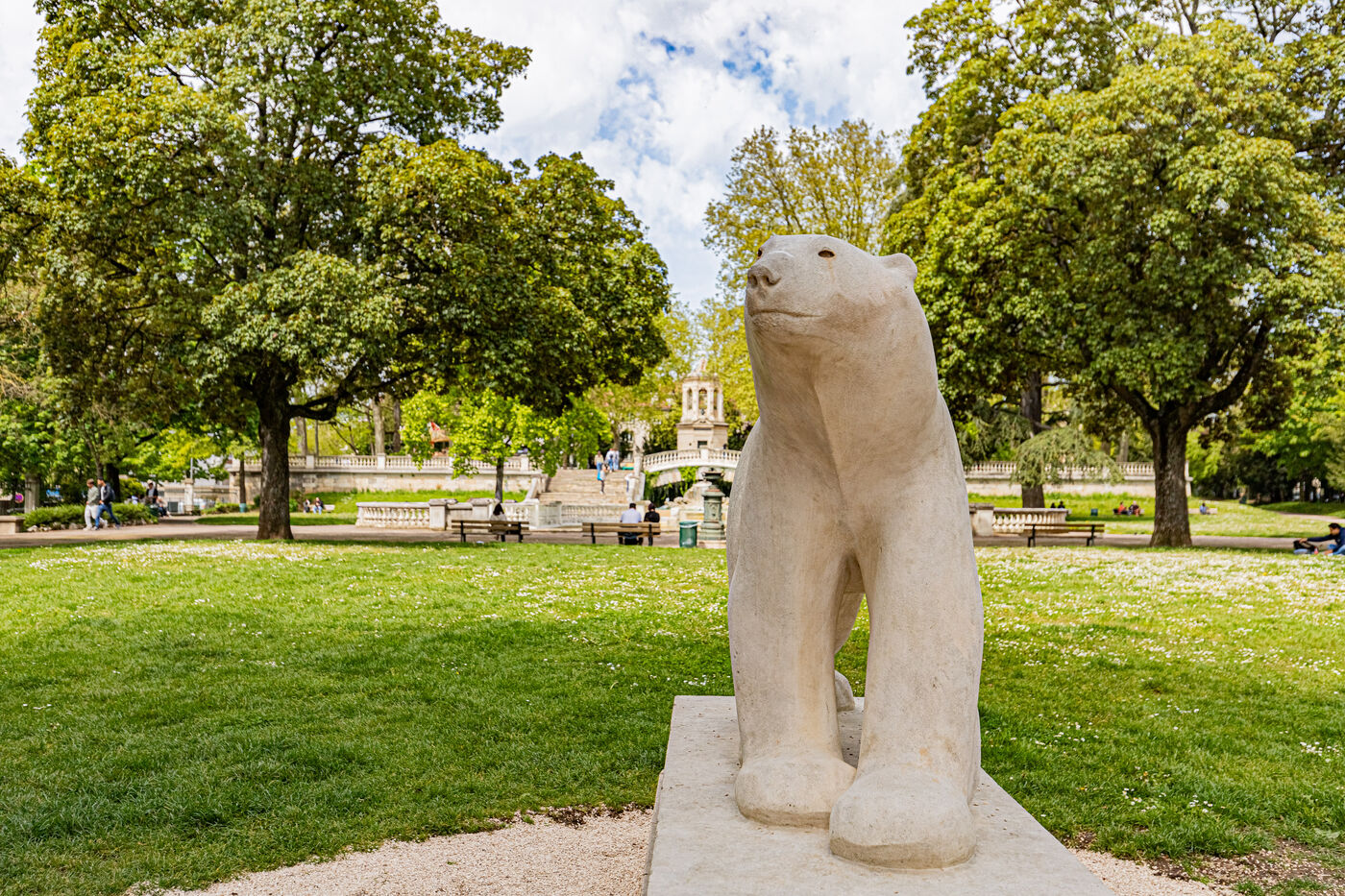 The Pompon bear in Dijon's Darcy garden is wrapped in the soft white of a winter landscape and freshly fallen snow. Then, in spring 2024, it regained its white colour following cleaning using essential oils in compliance with Ecojardins label standards.