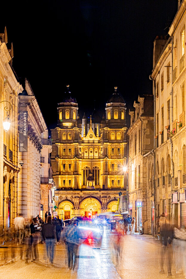 The City of Dijon has inaugurated a new lighting system to highlight its protected area. This allows remarkable buildings on Rue de la Liberté to be illuminated, with controlled energy consumption. This is an opportunity to participate in the "Pink October" operation.