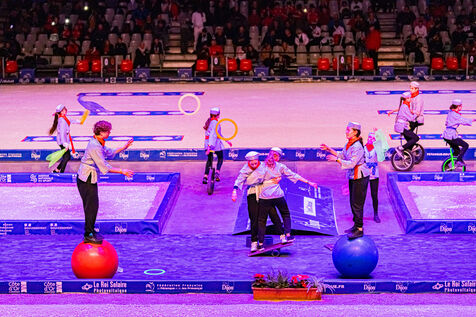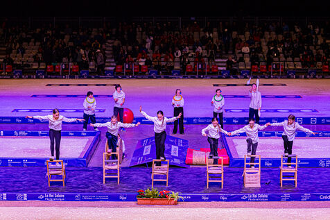 Opening ceremony of the 2024 World Pétanque Championship at the Zenith in Dijon. Presentation of the teams, referees, official speeches, circus show, juggling, demonstration, the French Pétanque and Provencal Game Federation (FFPJP) has pulled out all the stops to ensure the show before the start of the competition.