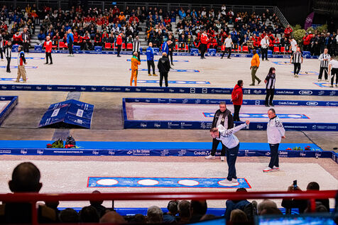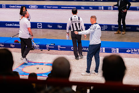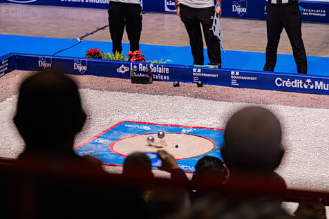 Tir de précision les qualifications avec Dylan Rocher au championnat du monde de pétanque 2024 au zénith de Dijon. Illustrations et chorégraphie typique de cette discipline. Une épreuve qui verra Dylan Rocher inscrire seulement 25 points, l'envoyant de justesse au repêchage, d'où il sera éliminé alors qu'il était favoris de la compétition, laissant passer sa chance de remporter cette épreuve pour la 4è fois d'affilée.