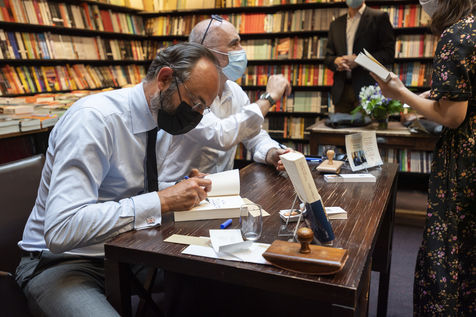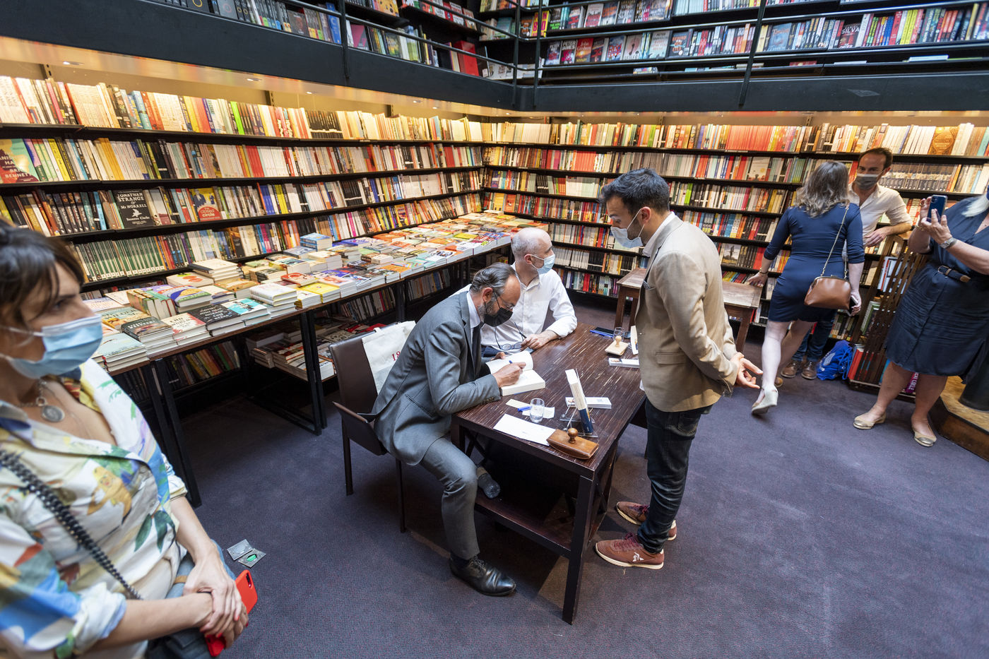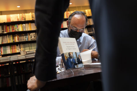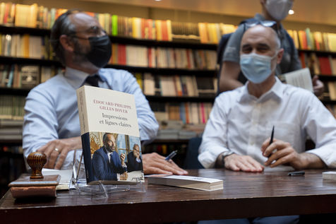 L'ancien Premier ministre et actuel maire du Havre, Edouard Philippe et Gilles Boyer dedicacent leur livre "Impressions et lignes claires"