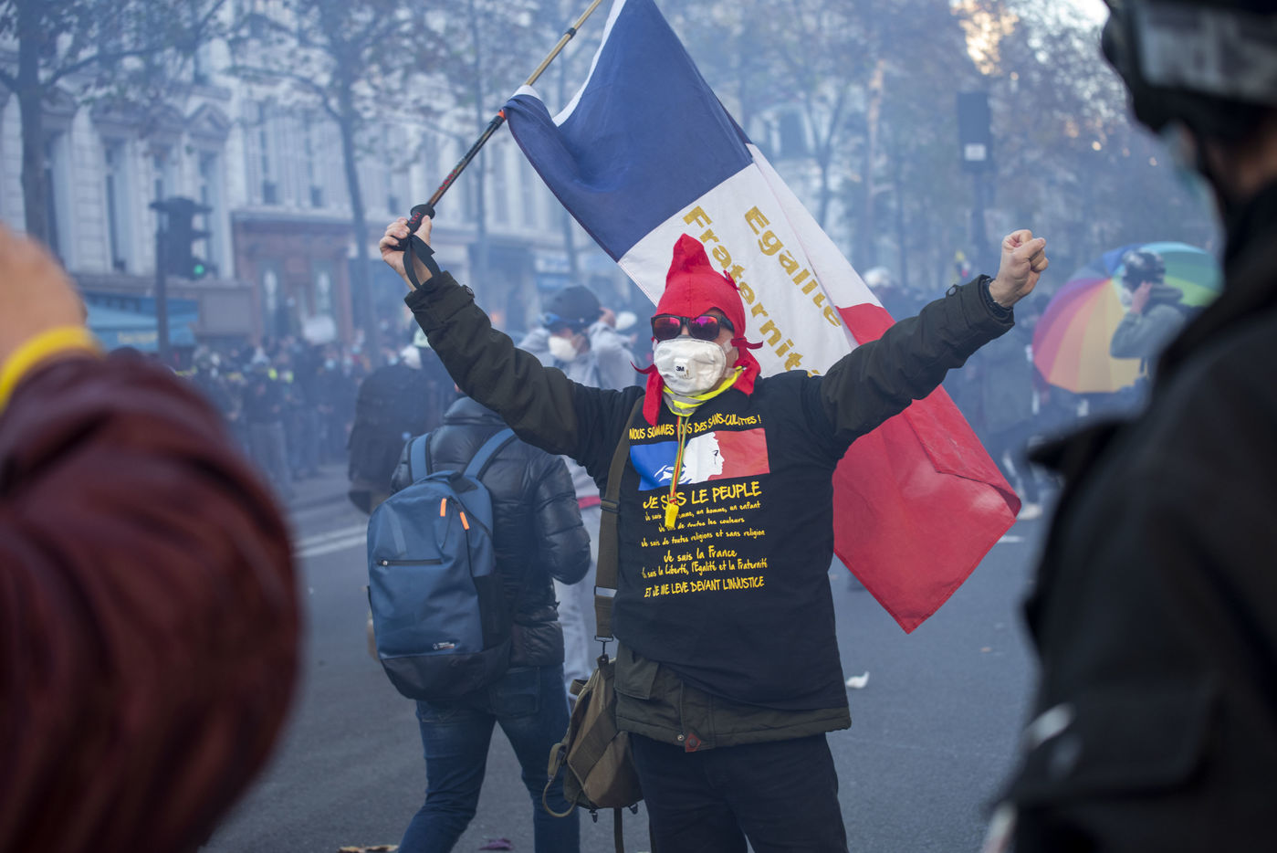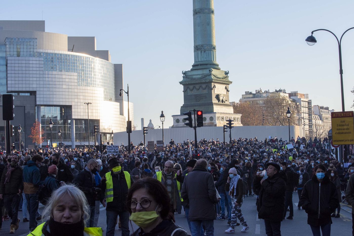 Demonstration from Place de la Republique to Place de la Bastille in Paris against police violence and article 24 of the Global Security Act. 24,000 people marched to defend the freedom to inform and film the police. Paris, France, November 28, 2020.