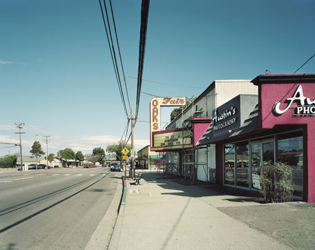 Stephan and I met several times during his photographic tour of California in spring 2013, in Los Angeles, where he began his work, and in Santa Barbara, while he was making his way up the coast. We talked often about California?s vast terrain, its coastal prosperity and the challenges for cities like Fresno further inland. Outside of Grauman?s Chinese?always a tourist attraction?the rest of the state?s cinemas are often one of its least appreciated historical landmarks. Zaubitzer?s photography, though, argues for their importance, as a way to read each location through the condition of these cinemas and their aesthetic relationship to the land, the weather, the economy, and the contextual streetscape.