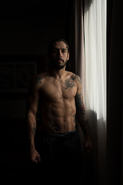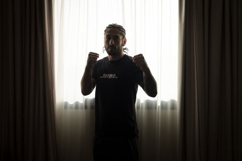 Portraits of Nessim Khettou and Yohan Salvador, two fighters from the Mixed Martial Art (MMA) club TFT31, and their coach Quentin Arola, made in Nîmes during the GFA-MMA Gala on November 13, 2021