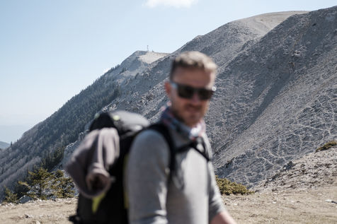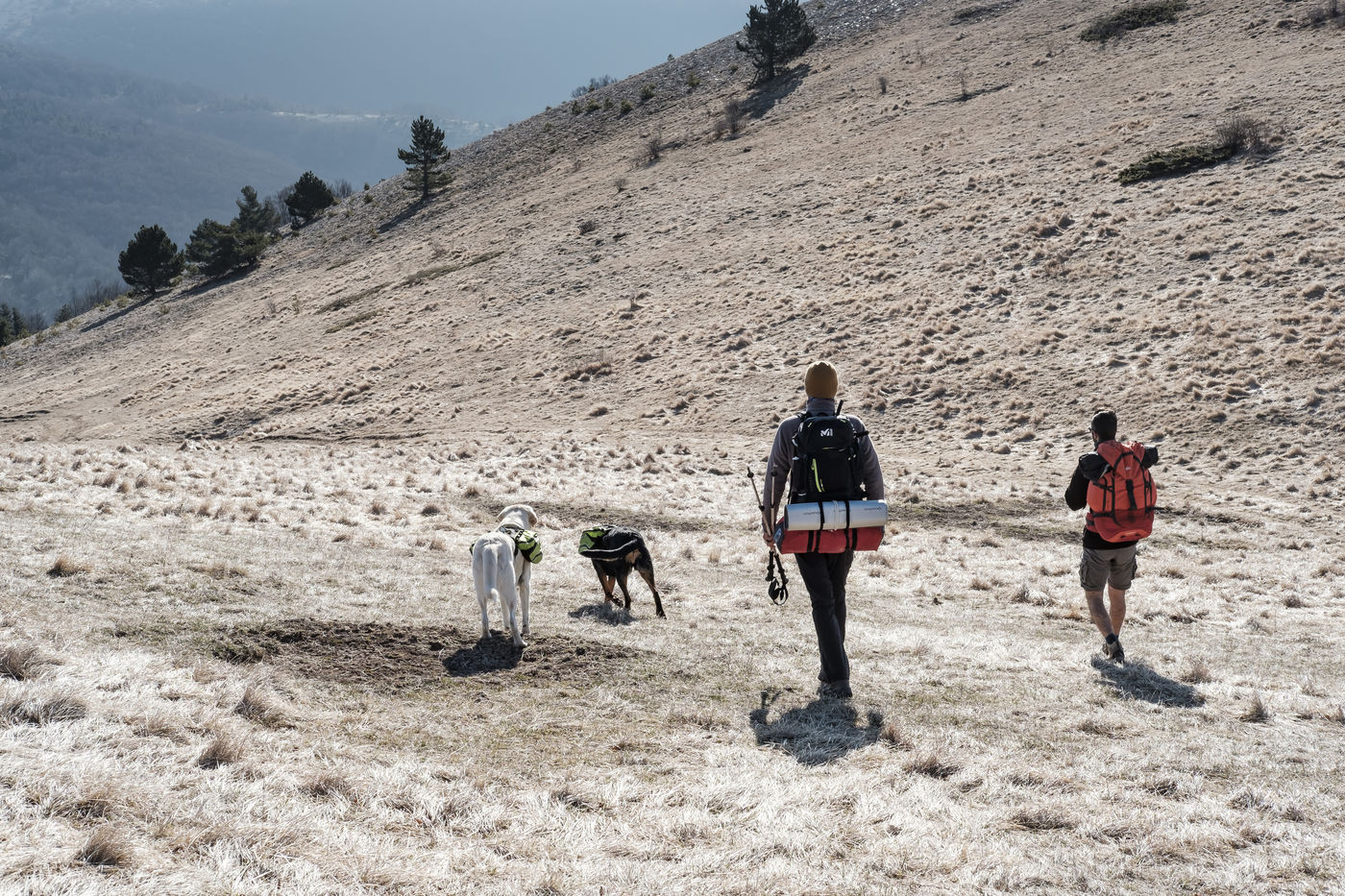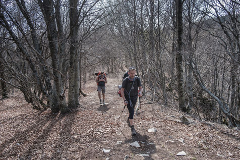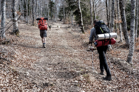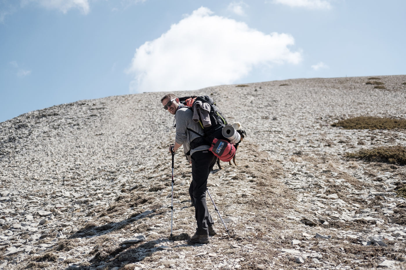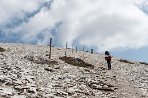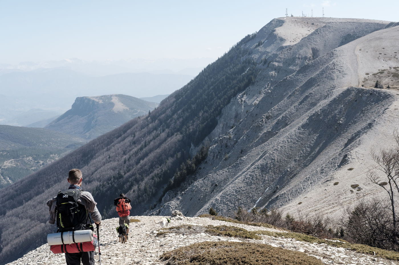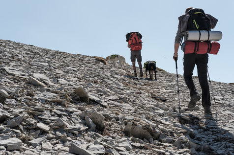 En choisissant de partir avec Nessi et Gaïa, deux chiens de berger, il fallait profiter de conditions particulières : plus de neige sur les hauteurs, mais pas encore de grosse chaleur et pouvoir emmener matériel et provision d'eau pour deux grosses journées de marche. Le sentier n'est pas toujours de tout repos : il emprunte parfois des GR et parfois de simples chemins forestiers avec un dénivelé assez raide. Si la différence entre point haut et point bas n'est pas si grande, les montées succèdent aux descentes dans une oscillation permanente avant d'accéder au sommet.