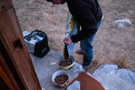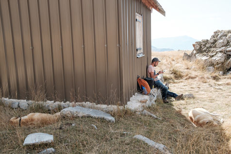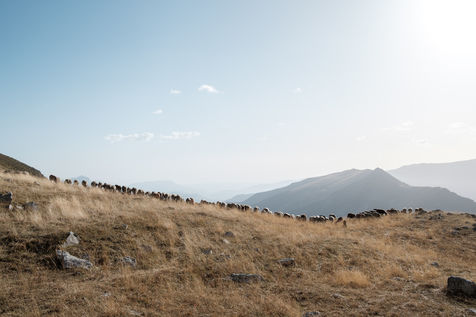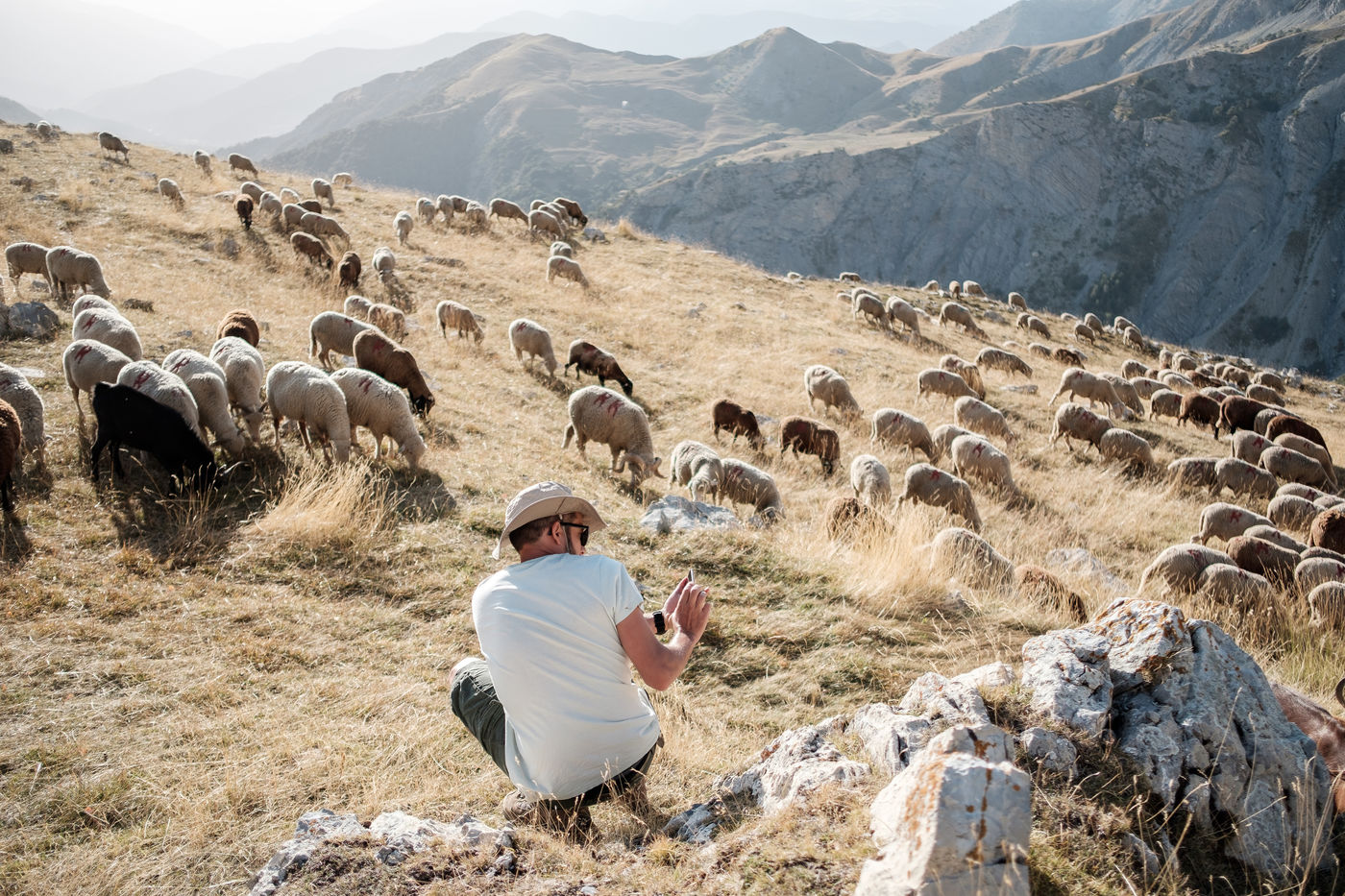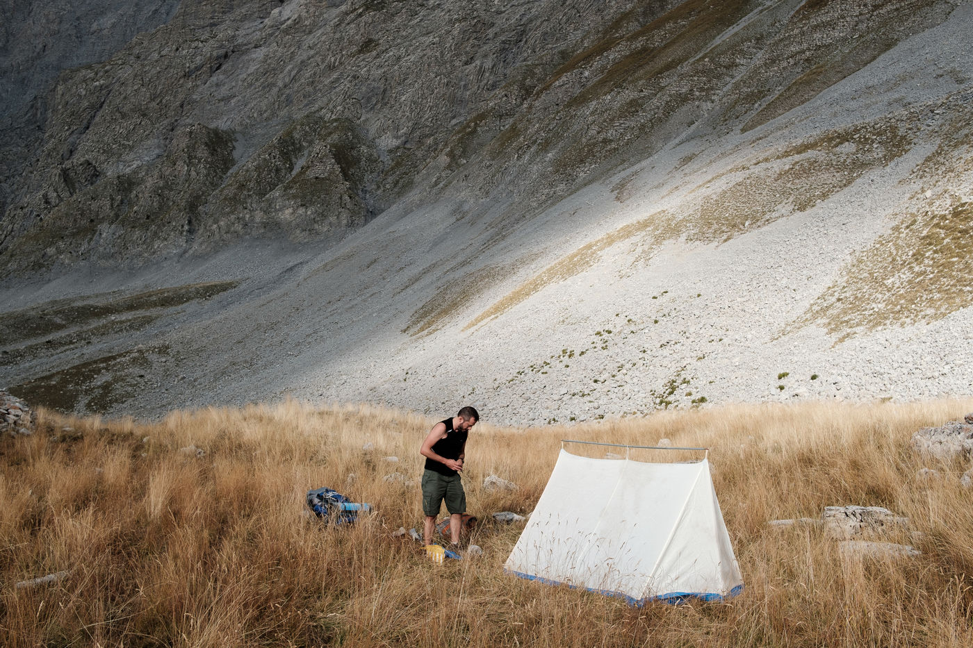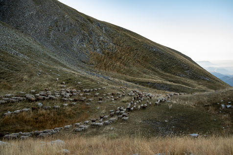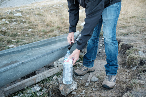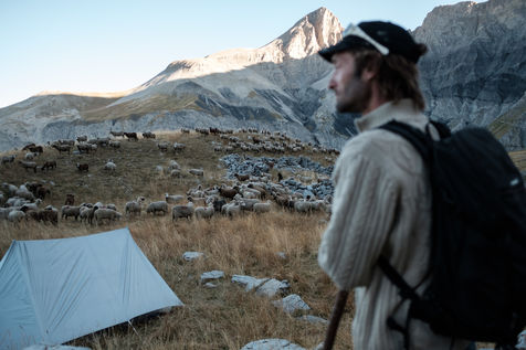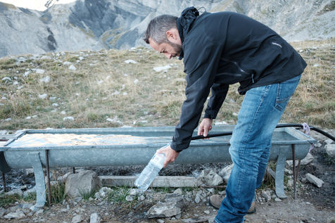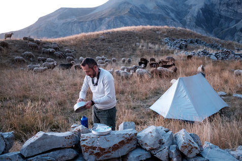 But the conditions are not easy: he has set up his tent a few metres from where the herd lies down and spends his nights amidst the sounds of bells and the barking of herd protection dogs, more than an hour's walk from the nearest hamlet; the available water is 20 minutes' walk away and the available flow is sometimes random; finally, all the food has been brought on his back.