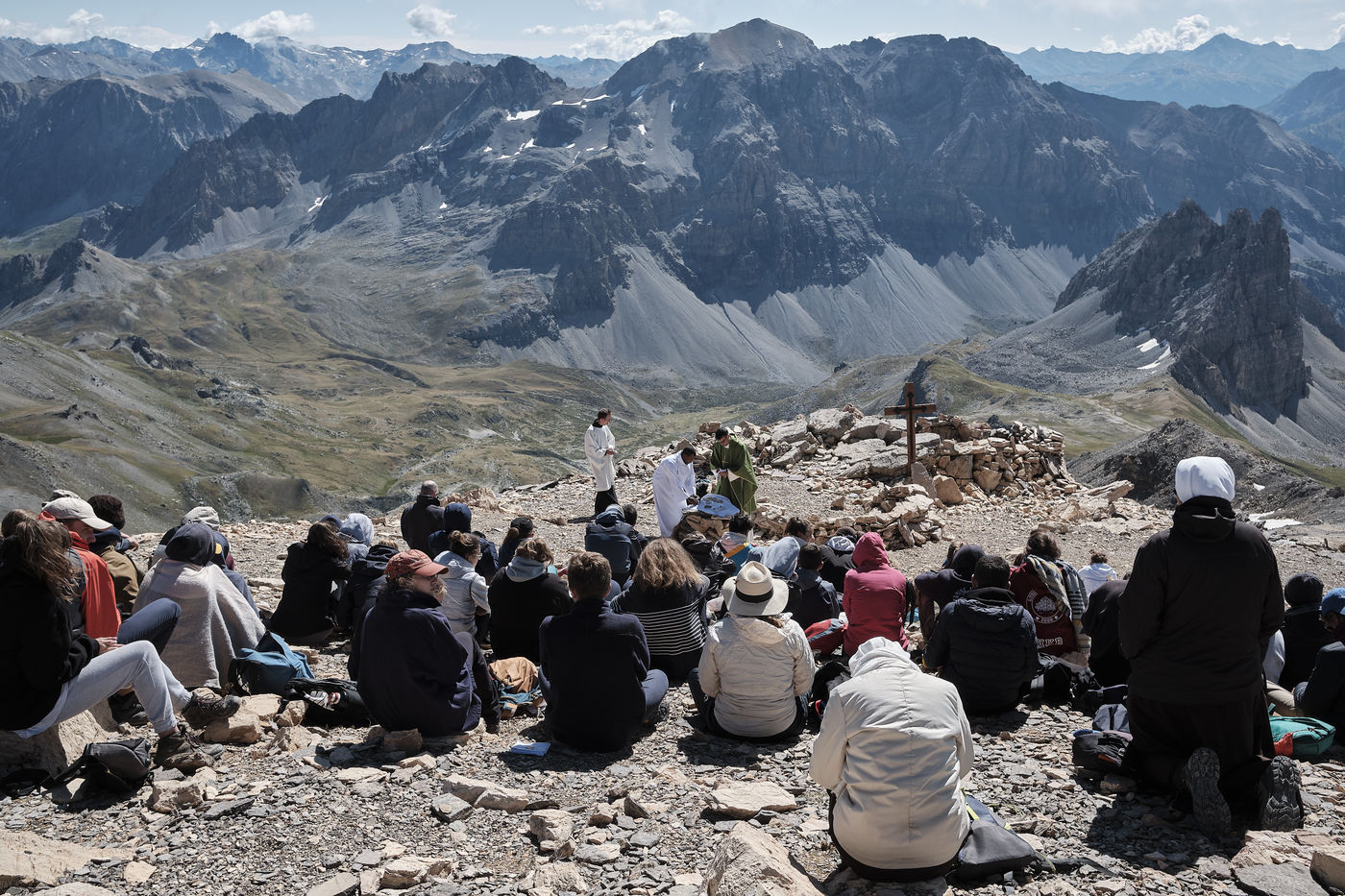 Its summit shelters a small chapel, Notre-Dame-des-sept-douleurs, where people have been coming on pilgrimage since at least the 15th century: rebuilt several times (in wood in 1694, then in stone in 1897), the building suffers from its high altitude and the periods of frost and thaw. It is also a small territorial aberration: although on French territory, it belongs to the Italian commune of Bardonecchia, situated just behind the border.