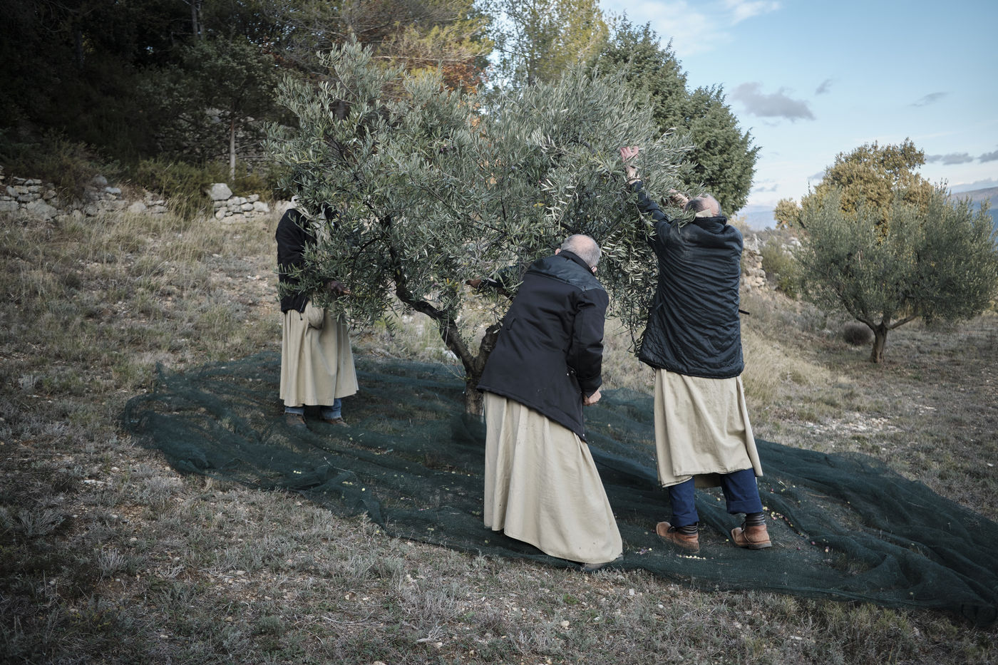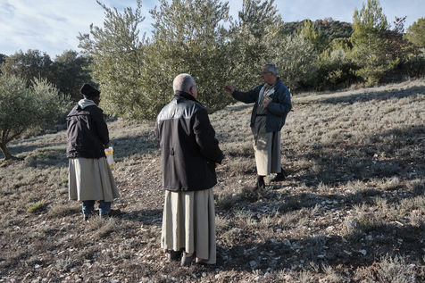 In Ganagobie, above the Durance valley, the monks of the Benedictine abbey of Ganagobie cultivate olive trees to produce oil, sold in the monastery store.