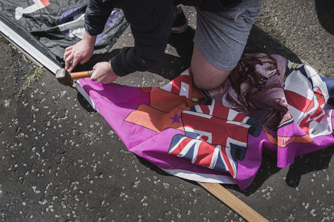 Chaque année au mois d'août, les villes de Belfast et de Derry-Londonderry - ancien bastion de l'IRA dans les années 70 dont le nom seul raconte la schizophrénie - est le théâtre d'un immense bonfire. Des adolescents, catholiques et républicains radicaux du quartier pauvre du Bogside, jettent des cocktails molotov et embrasent un tas de palettes de bois et de drapeaux du Royaume-Uni, qu'ils ont collecté la semaine précédente. Une des dernières manifestations de la dissidence républicaine en Irlande du Nord.
