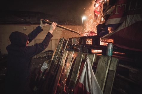 Every year in August, the cities of Belfast and Derry-Londonderry - a former IRA stronghold in the 1970s whose name alone tells the tale of schizophrenia - are the scene of a huge bonfire. Teenagers, radical Catholics and Republicans from the poor Bogside district, throw molotov cocktails and set fire to a pile of wooden pallets and UK flags they collected the week before. One of the last manifestations of Republican dissidents in Northern Ireland.