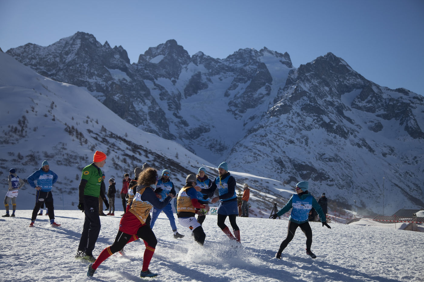 Ils n'ont pas froid aux yeux. Ni aux jambes. Ni aux mains. Pour la première compétition de snowrugby organisée par le RC Briançon, huit équipes se sont affrontées samedi 22 janvier, dans le col du Lautaret, à 2058 mètres d'altitude. Un tournoi amical, sportif, épique.
