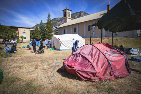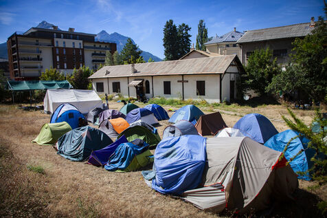 Suite à la fermeture du lieu d'accueil pour les exilés à Briançon, "Les Terrasses Solidaires", la paroisse de Briançon a mis à disposition ses locaux et a autorisé l'installation de tentes à l'extérieur, et ce, pour une durée indéterminée. Environ une centaine de personnes sont accueillies avec la bénédiction de l'évêque de Gap.