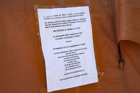 Refugee minors have been installed in tents in the heart of the Croix Rousse district, in a particularly busy area, because the Forum Refugiés association had no more space to house them. These minors are waiting for their minority to be assessed. At this stage of their exile, the Metropole should be responsible for their accommodation.