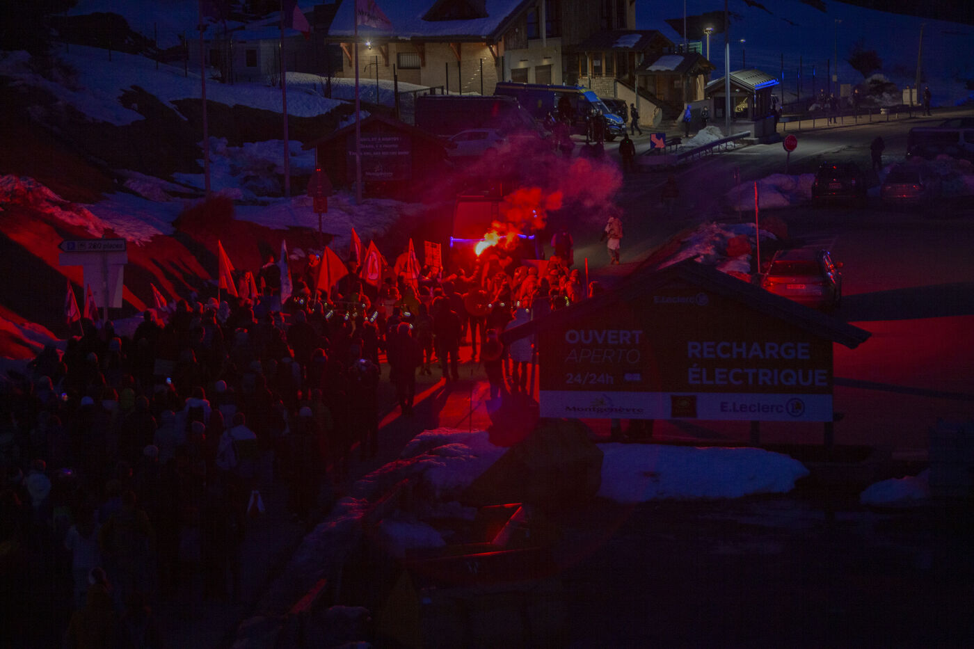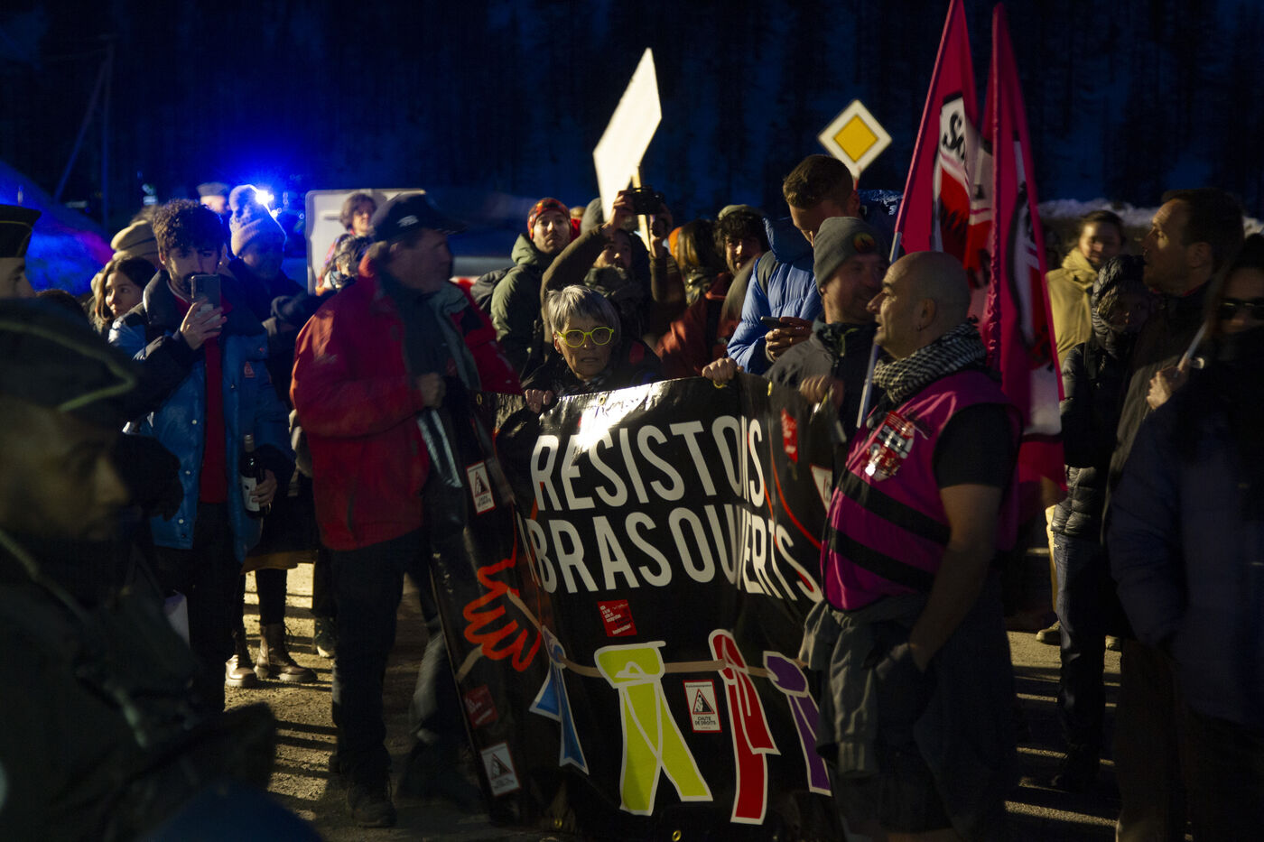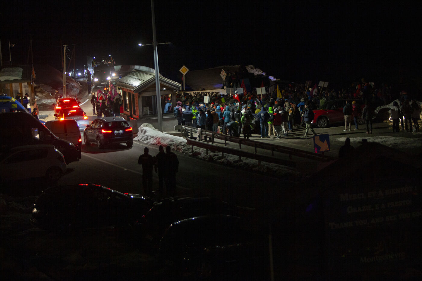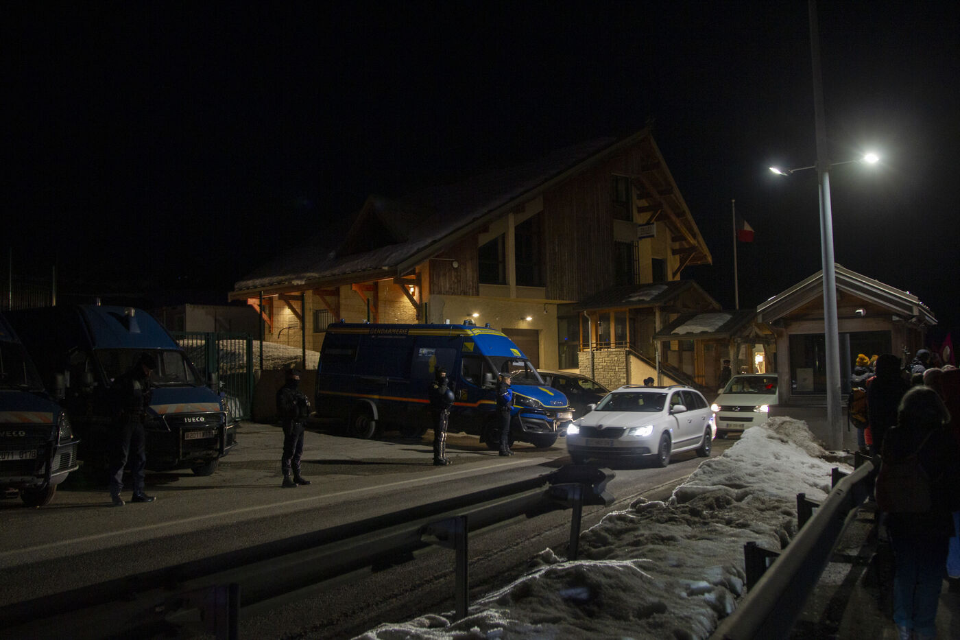 On Saturday, March 16th, in Montgenèvre, a significant number of people gathered to express their opposition to the militarization of the border and its consequences. Between August and October 2023, three individuals tragically lost their lives in the Briançon region. These deaths are directly attributed to political choices that maintain a repressive border enforcement, thereby hindering the passage of displaced individuals. For over two hours, protesters voiced their anger and disapproval of police methods towards migrants outside the Police aux Frontières station in Montgenèvre. Before embarking on their outreach efforts, they shared a meal at the Maison de la Montagne.