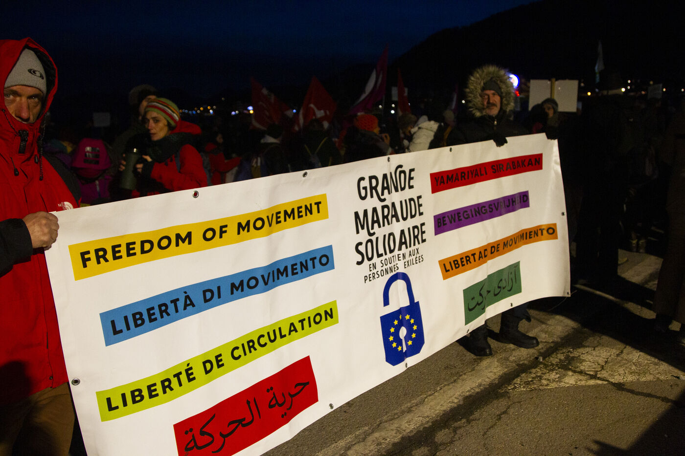 Ce samedi 16 mars, à Montgenèvre, un nombre important de personnes se sont rassemblées pour exprimer leur opposition à la militarisation de la frontière et ses conséquences. Entre août et octobre 2023, trois individus ont tragiquement perdu la vie dans la région de Briançon. Ces décès sont attribués directement aux choix politiques qui maintiennent un dispositif répressif à la frontière, entravant ainsi le passage des personnes exilées. Pendant plus de deux heures, les manifestants ont exprimé leur colère et leur désapprobation des méthodes policières envers les migrants devant le poste de la Police aux Frontières à Montgenèvre. Avant de partir pour la Grande Maraude,, ils ont partagé un repas à la Maison de la Montagne.