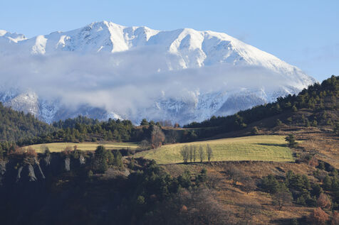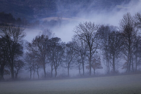 Des images de paysages prises dans la campagne des Alpes, au petit matin, avec une brume et des sommets enneigés, créant une impression de lieu mystique.
