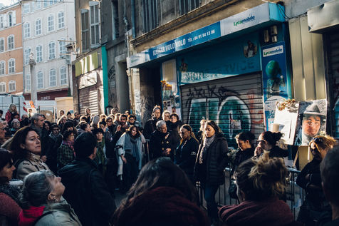 December 5, 2018. Marseille. France. At 9:05 a.m. on December 5, one month after the collapse of the buildings on rue d'Aubagne that caused the deaths of 8 people, a tribute was paid by the inhabitants of the district to the missing persons. 8 minutes of silence were observed, as well as an additional one in memory of Zineb Redouane, an 80-year-old woman who died during a demonstration because of a police tear gas canister. The inhabitants regretted the lack of personality of the town hall, their silence and the lack of support.