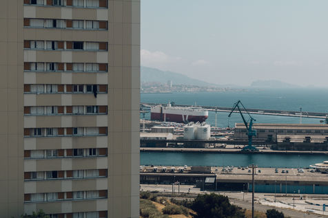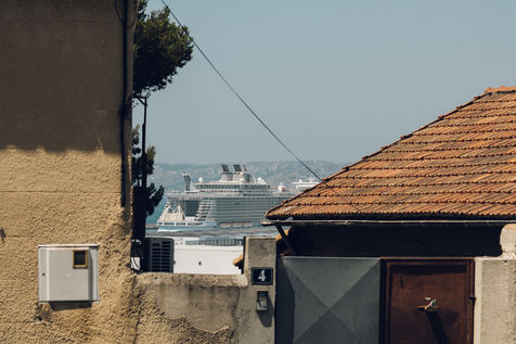 Illustration of the pollution related to cruise ships in Marseille. To the north of the city, the districts of Saint Henri and Saint André are the most exposed. Everywhere, fields of containers gnaw at the landscape and the Mistral pushes the smoke from the port towards the neighbouring houses every day. Initialy create for Society Magazine.