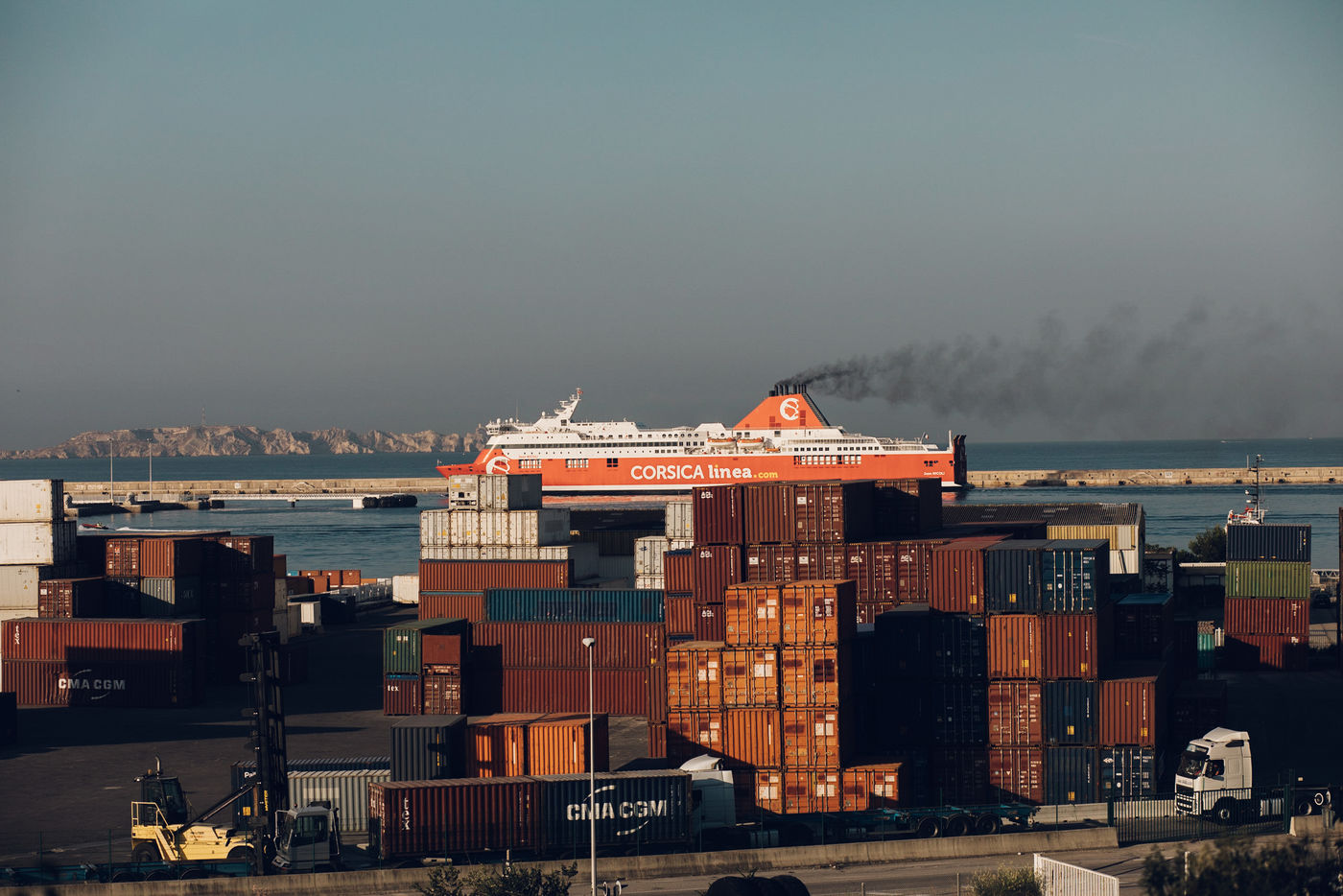 Marseille. Illustration de la pollution liée au bateaux de croisières à Marseille. Au nord de la ville, les quartier de Saint Henri et Saint André sont les plus exposés. Partout des champs de containers rongent le paysages et le mistral pousse chaque jours les fumées du port vers les habitations voisines. Reportage initialement réalisé pour Society.