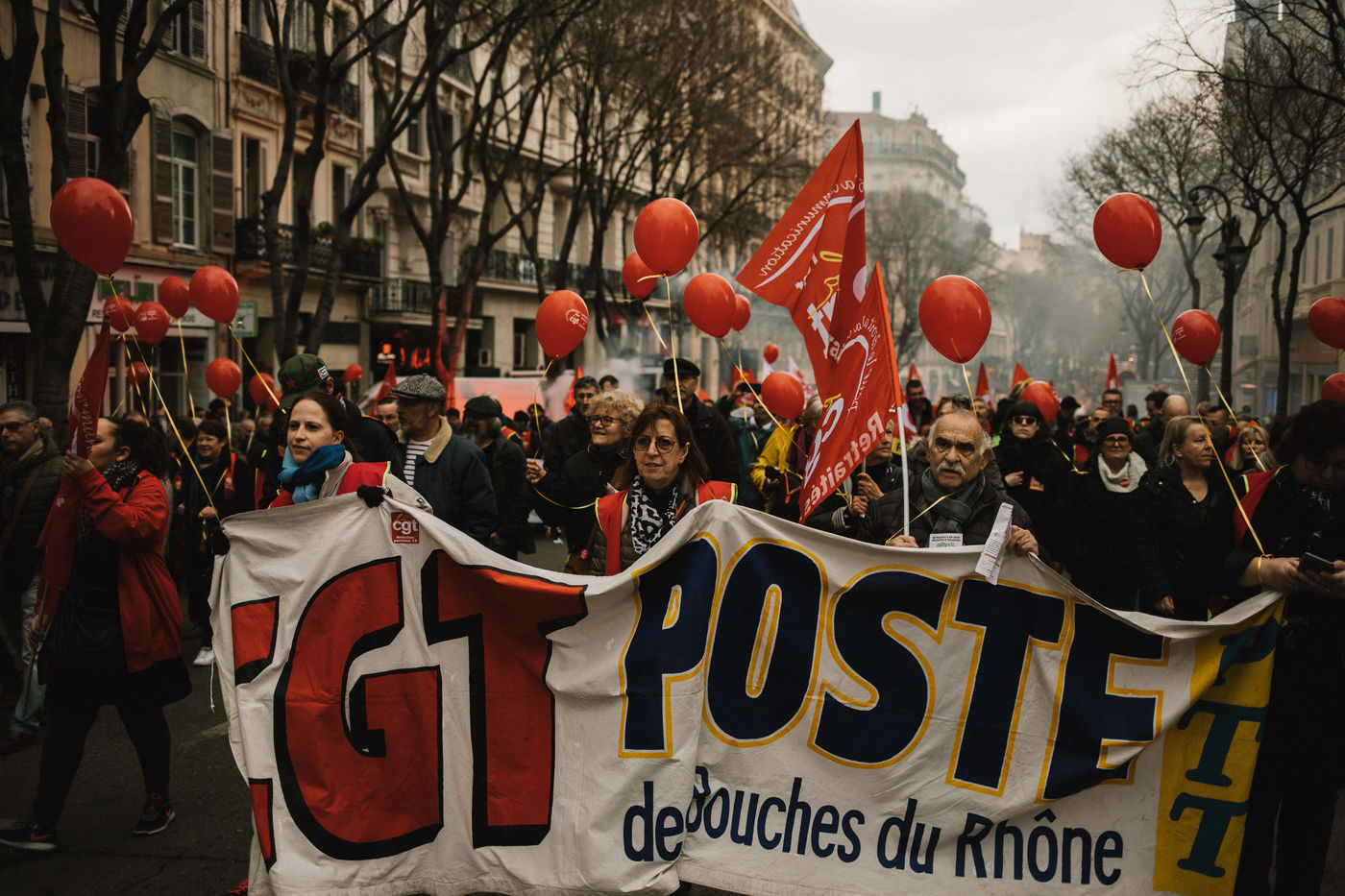 January 24, 2020. Marseille. France. Sixth day of national mobilization for this 51 day strike in Marseille led by the CGT among other unions to protest against the pension reform.