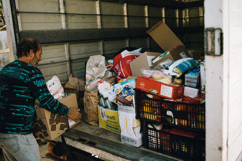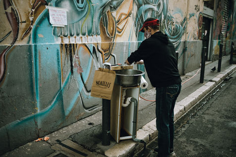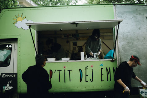 April 24, 2020. Marseille. France. Volunteers from the Emmaus community in Marseille distribute breakfast to homeless people. This is an opportunity for the volunteers to distribute fabric masks, exit certificates and reminders of barrier gestures.