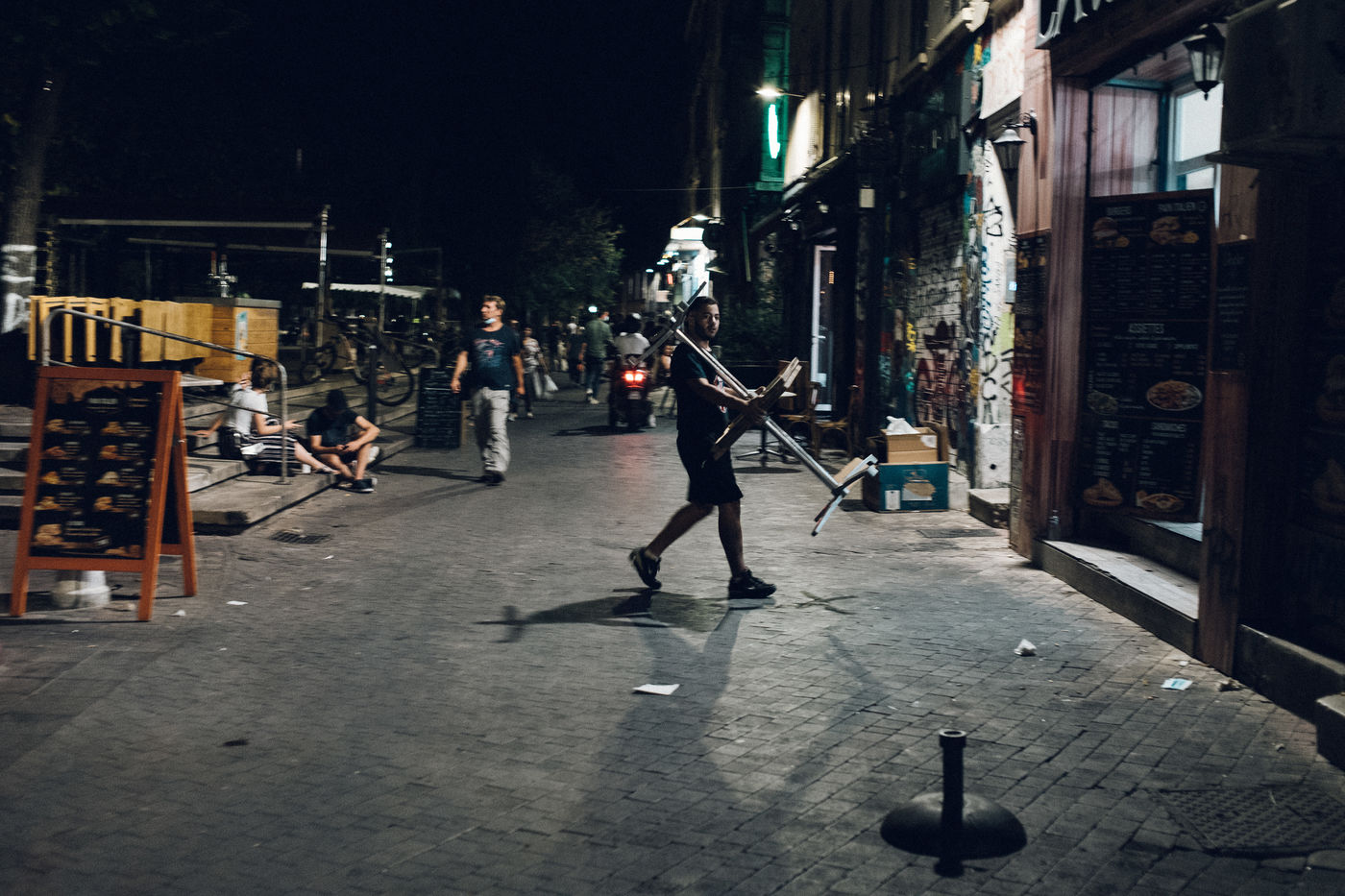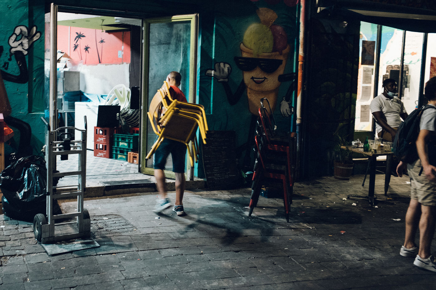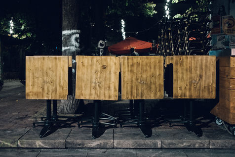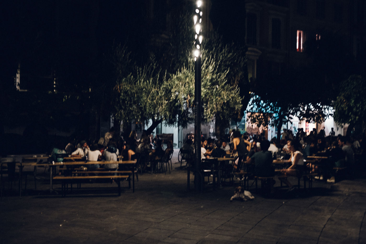 Suite à l'annonce du prefet les bars et restaurants doivent fermer leurs portes dès 23h. Inquiets ou résignés, les clients ont souvent quitté les terrasses dans le calme, et certains se sont installés à même le sol, tout à côté. Illustration sur le Cours Julien haut lieu des restaurants et bar à Marseille. Reportage réalisé pour Le Monde.