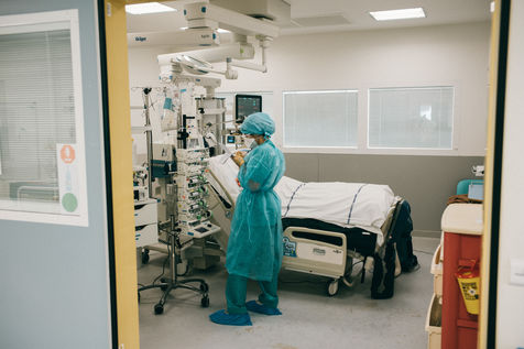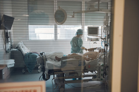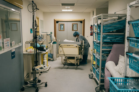 November, 13, 2020. Marseille. France. In the intensive care unit of the Timone Hospital in Marseille, where patients with COVID-19 are treated. As the second wave reaches its peak these days, the intensive care unit is under extreme stress.