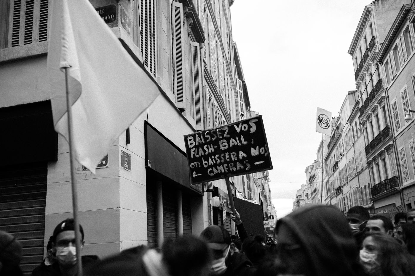 28 novembre 2020, Marseille, France. Rassemblement à Marseille pour la Marche des Libertés, de citoyens et journalistes pour protester contre les violences policieres et la loi Securite Globale.