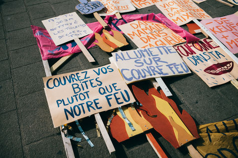 08 March 2021. Marseilles. France. International Day of Struggle for Women's Rights. Rally on the Old Port of Marseille, feminist slogans and collages.