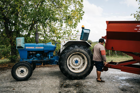 Dans le bordelais, les vendanges à la main se font de plus en plus rares au profit de machines de récolte plus performantes. Un vigneron qui produit une AOC Médoc cru Bourgeois, choisit lui de garder l'esprit familial en embauchant d'une année sur l'autre les volontaires souhaitant participer à cette tradition des vendanges. France, septembre 2020. Photo par Tom Grimbert / Hans Lucas