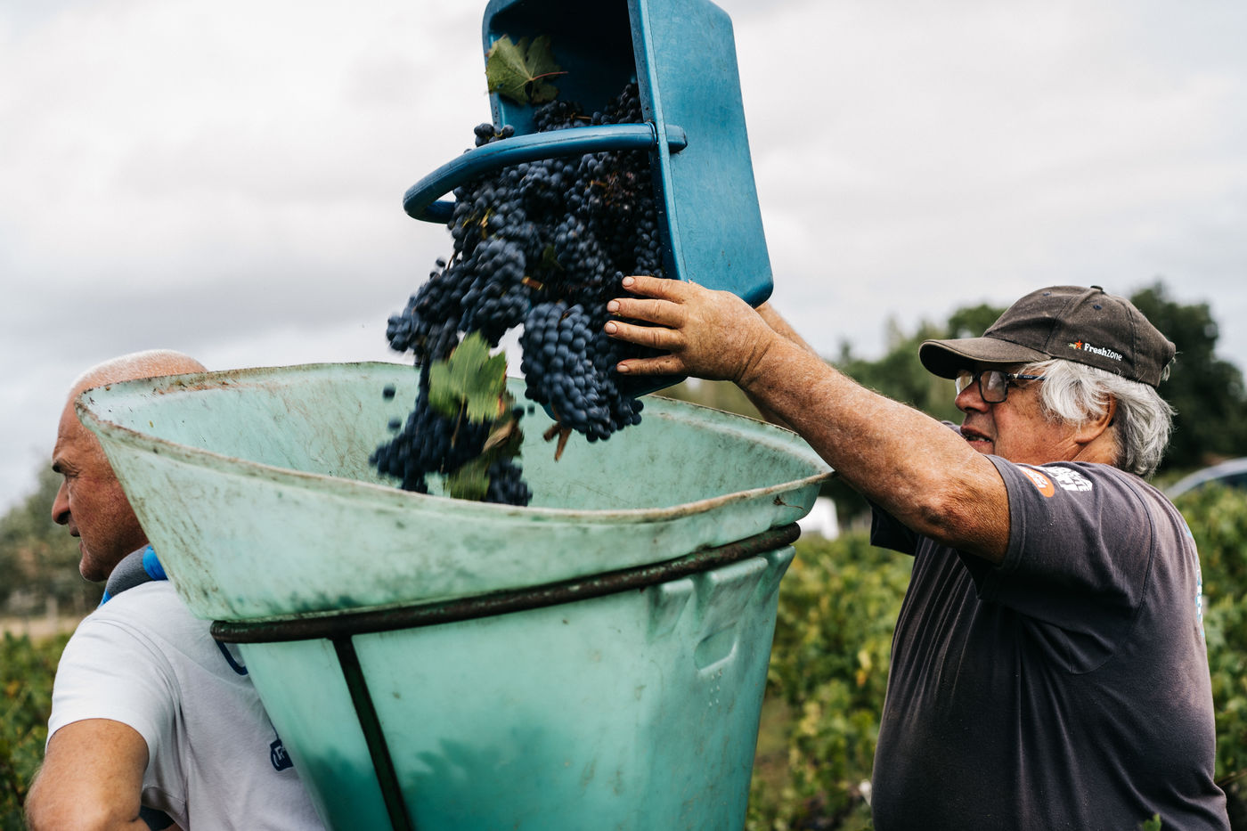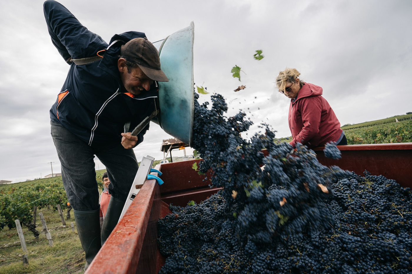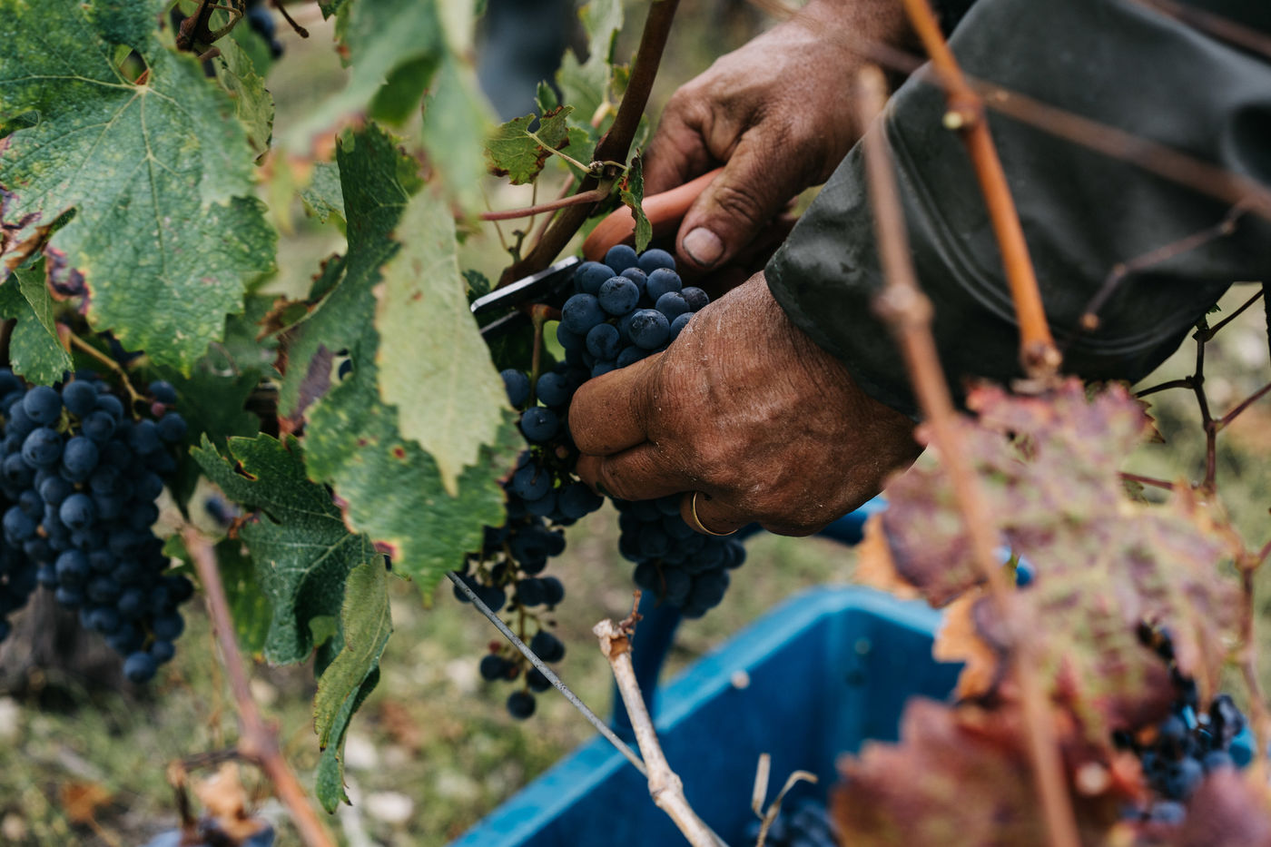 Traditional wine harvesting in Bordeaux region