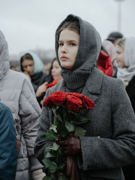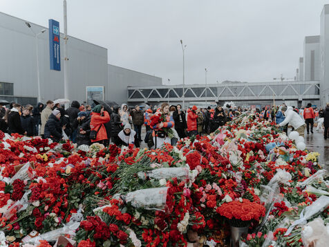RUSSIA, MOSCOW. Hundreds of Russians gather to pay their respects and lay flowers at the site of the terrorist attack on March 22, 2024.