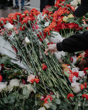 Des centaines de Russes viennent se recueillir et déposer des fleurs sur le lieu de l'attaque terroriste du 22 mars 2024.