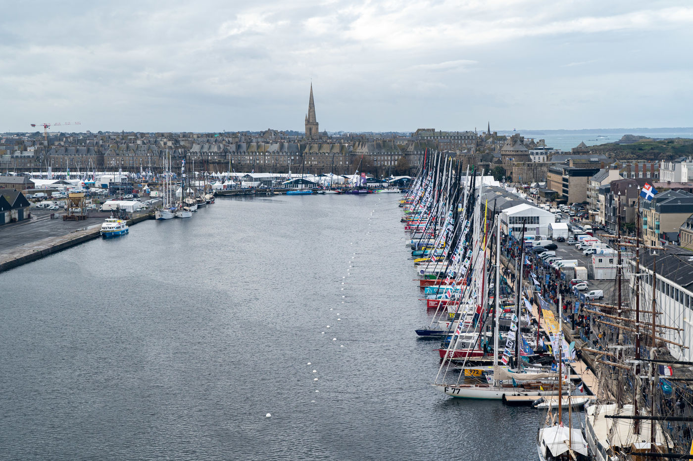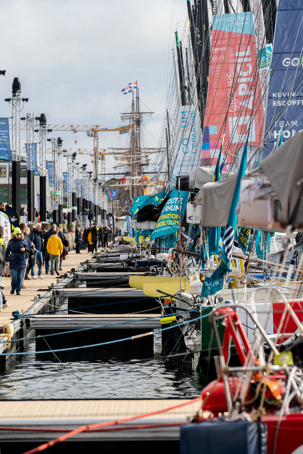France, Saint-Malo, le 6 novembre 2022. Ce dimanche, les skippeurs de la Route du Rhum 2022 n'ont pas pris le départ. suite à des conditions météorologiques défavorables le commité organisateur de la course à décidé dans la matinée de samedi de reporter le départ de la course, une première depuis sa création. Celui-ci aura finalement lieu le mercredi 9 novembre à 14h15. Ce changement de programme aura néanmoins permis aux visiteurs et aux malouins d'admirer les différents bateaux engagés dans la courses avant de les voir prendre le large définitivement. Thomas Lukes / Hans Lucas