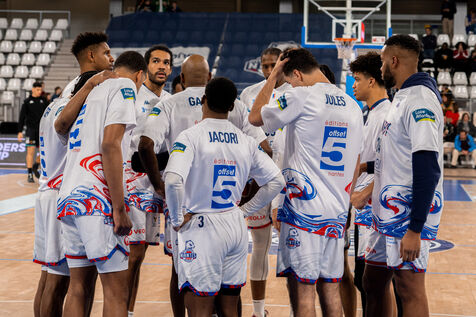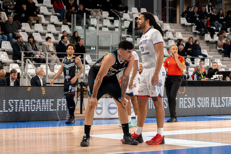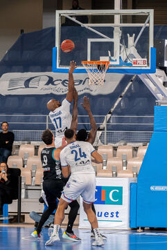 France, Nantes, le 16 décembre 2022. A la 10e semaine du championnat de France de basket-ball de deuxième division, Nantes s?incline de justesse face au Boulazac Basket Dordogne. Après une première mi-temps compliquée, le club de Nantes se réveille trop tardivement pour rattraper son adversaire qui ne le devance que de 10 points. C?est finalement le Boulazac Basket Dordogne qui remporte la victoire avec seulement 9 points d?avance (67-76) et finit à la quatrième place du classement provisoire, le club nantais quant à lui se positionne douzième sur le classement provisoire mais avec un match en moins de jouer par rapport à son adversaire. Le NBH rencontrera le Jeanne-d?Arc Vichy-Clermont Basket club pour sa dixième rencontre du championnat le 20 décembre prochain. Thomas Lukes / Hans Lucas.
